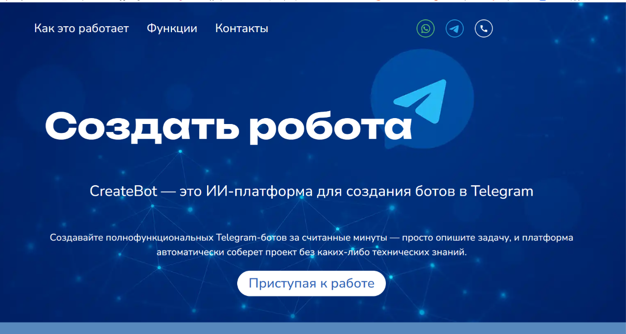 CreateBot — готовая AI-SaaS-платформа для автоматического создания Telegram-ботов как коммерческого продукта.
