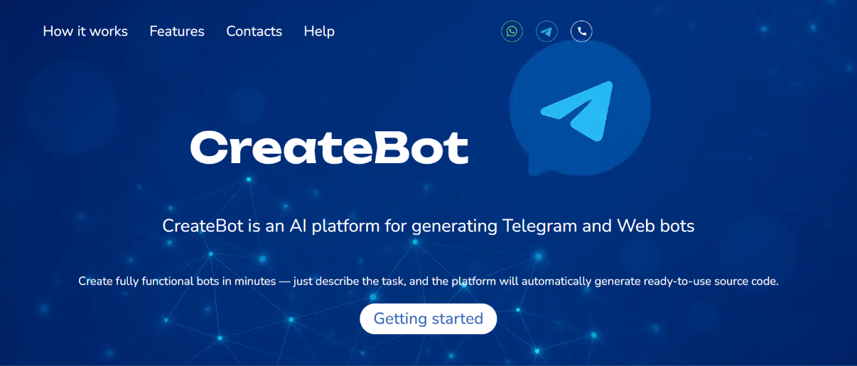 CreateBot — готовая AI-SaaS-платформа для автоматической генерации Telegram-ботов как коммерческого продукта.