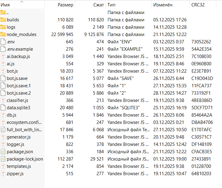 копия ZIP автоматически уходит в закрытый Telegram-канал администратора вместе с: