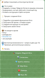 Пользователь в Telegram вводит описание будущего бота (на любом языке)