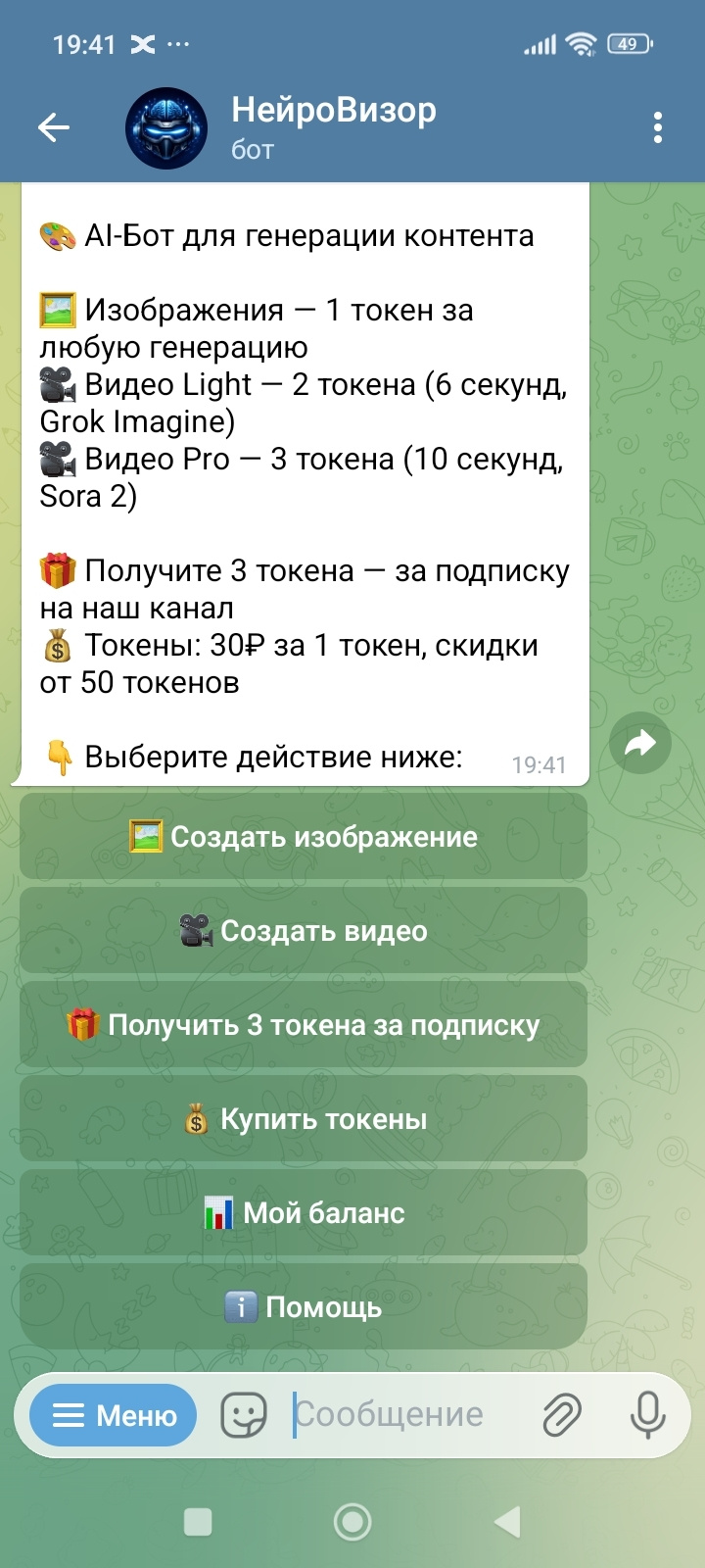 ???? Видео Pro: 3 токена (10 секунд, Sora 2)