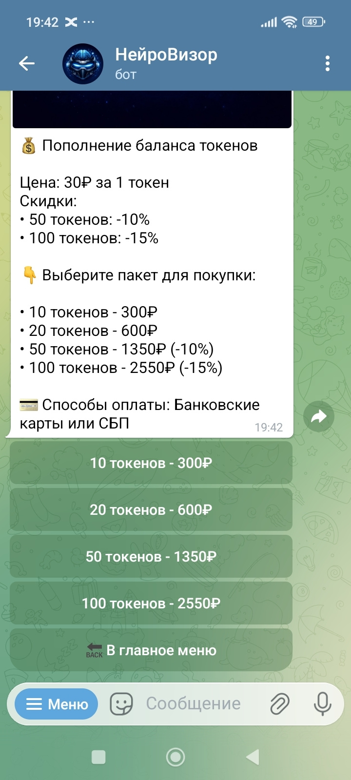 Минимальная покупка: 10 токенов (300₽)
