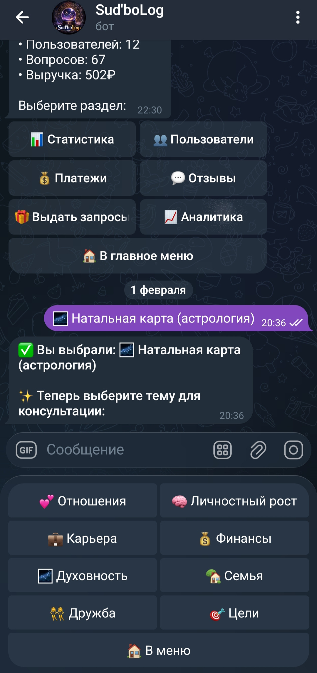 Я создал технологичный и рабочий продукт, но мой профиль — разработка, а не маркетинг. Боту не хватило экспертизы в продвижении и рекламных бюджетов.