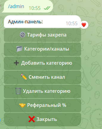 Подключение ваших каналов/категорий, назначение админа/модератора