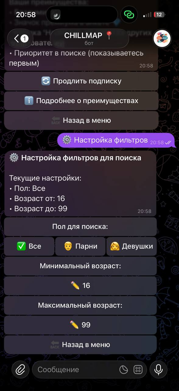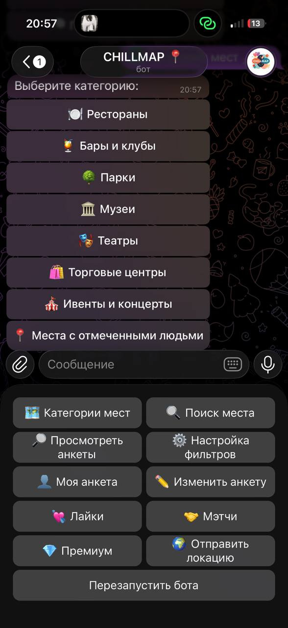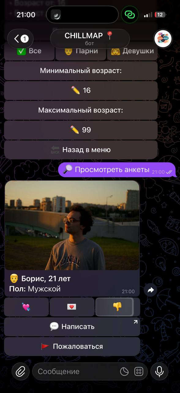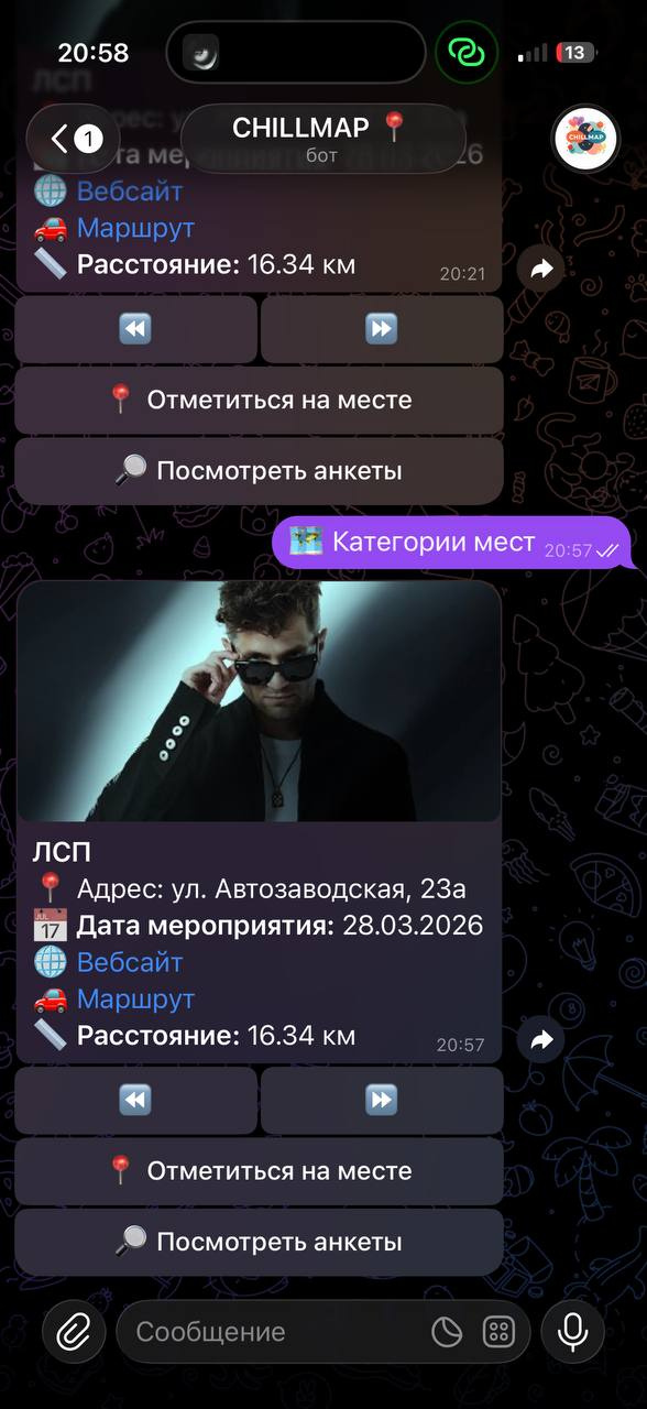 Домен: @chillmapbot — бот полностью работает внутри Telegram, не требует установки приложений.