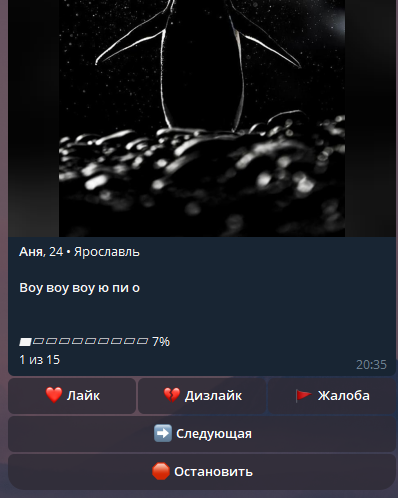 Это полноценный дэйтинг-бот готовый к запуску.