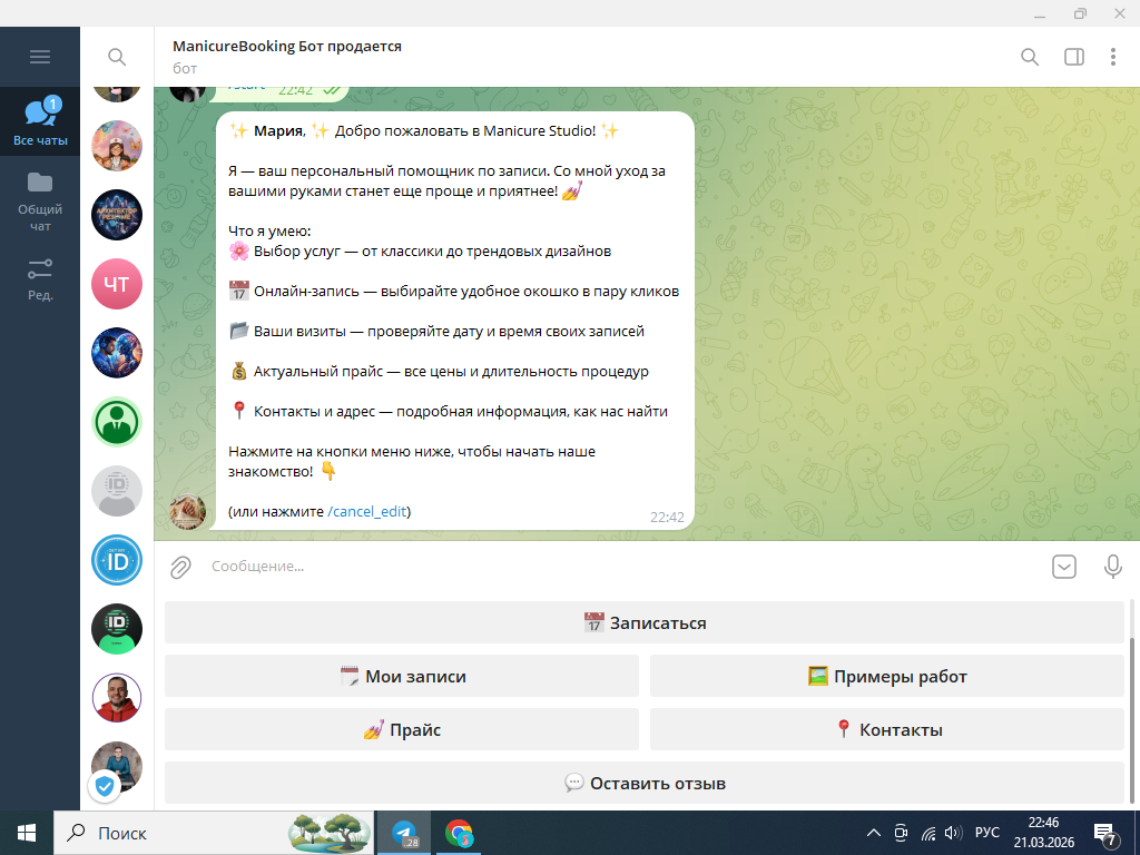 Это не просто онлайн-запись, это полноценная CRM-система в вашем смартфоне. Бот идеально настраивается под любую сферу услуг: