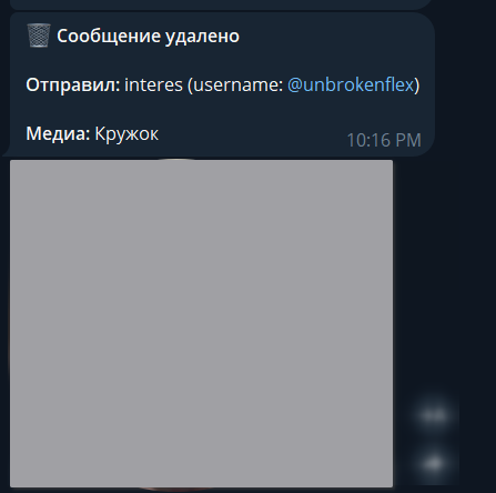 - Уведомления об удалённых сообщениях с восстановлением текста и медиа (фото, видео, голосовые, документы)
