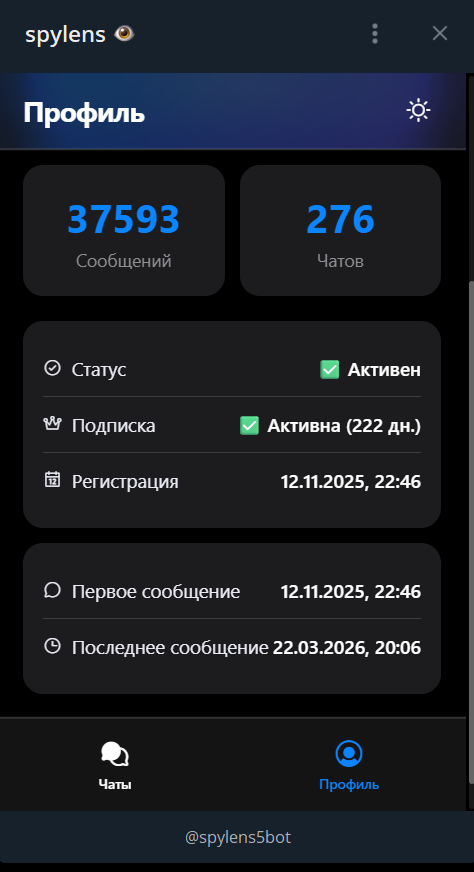 Telegram-бот на базе Business API - позволяет пользователю видеть всё, что происходит в его переписке: удалённые и изменённые сообщения, самоуничтожающиеся медиа. Работает с октября 2025 года, техническая часть стабильна и проверена временем.