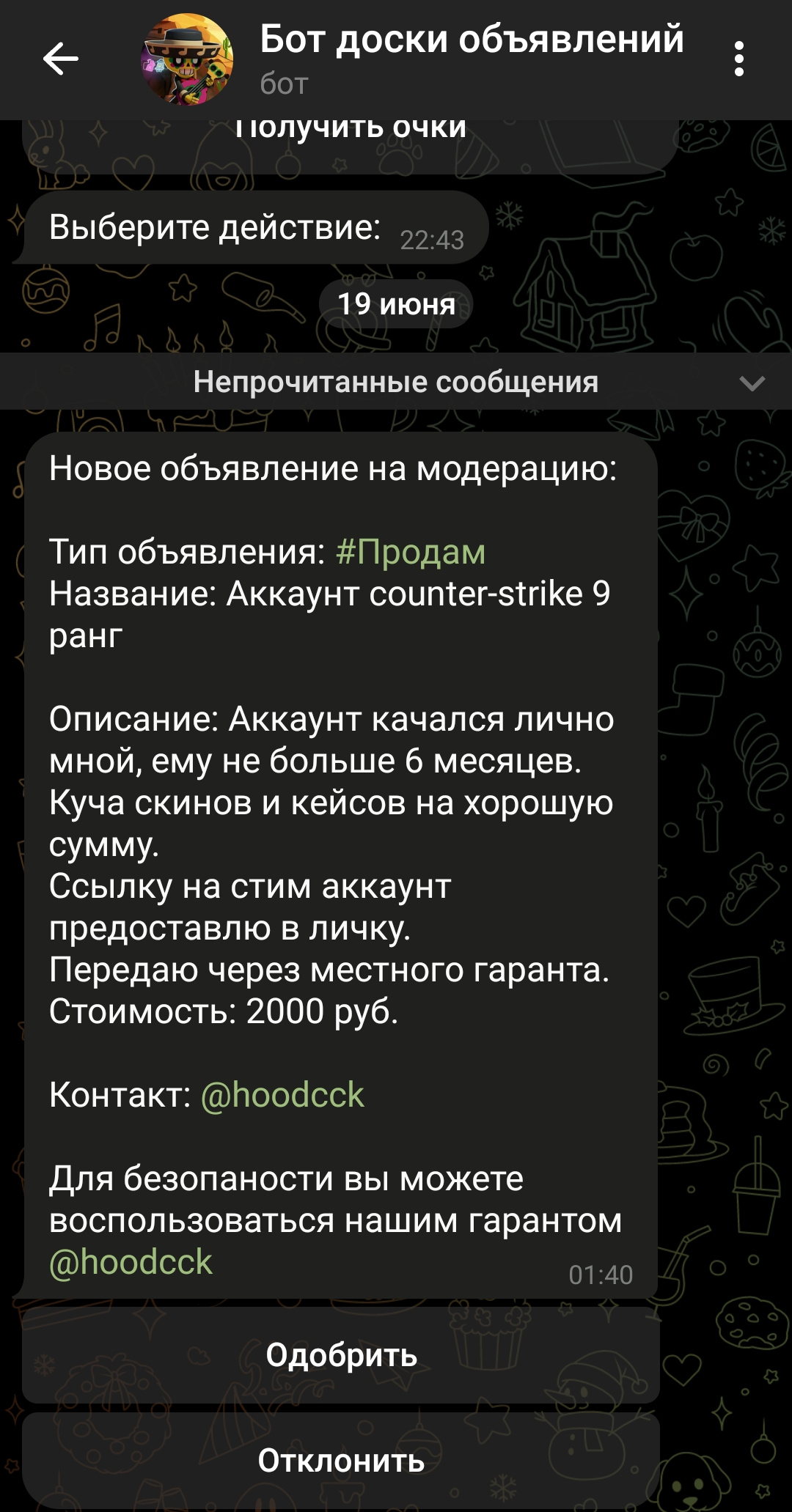 - Одобрение/отклонение объявления, проверка перед публикацией