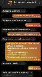 - Размещение объявлений (куплю/продам/обмен), автоматическая отправка в канал