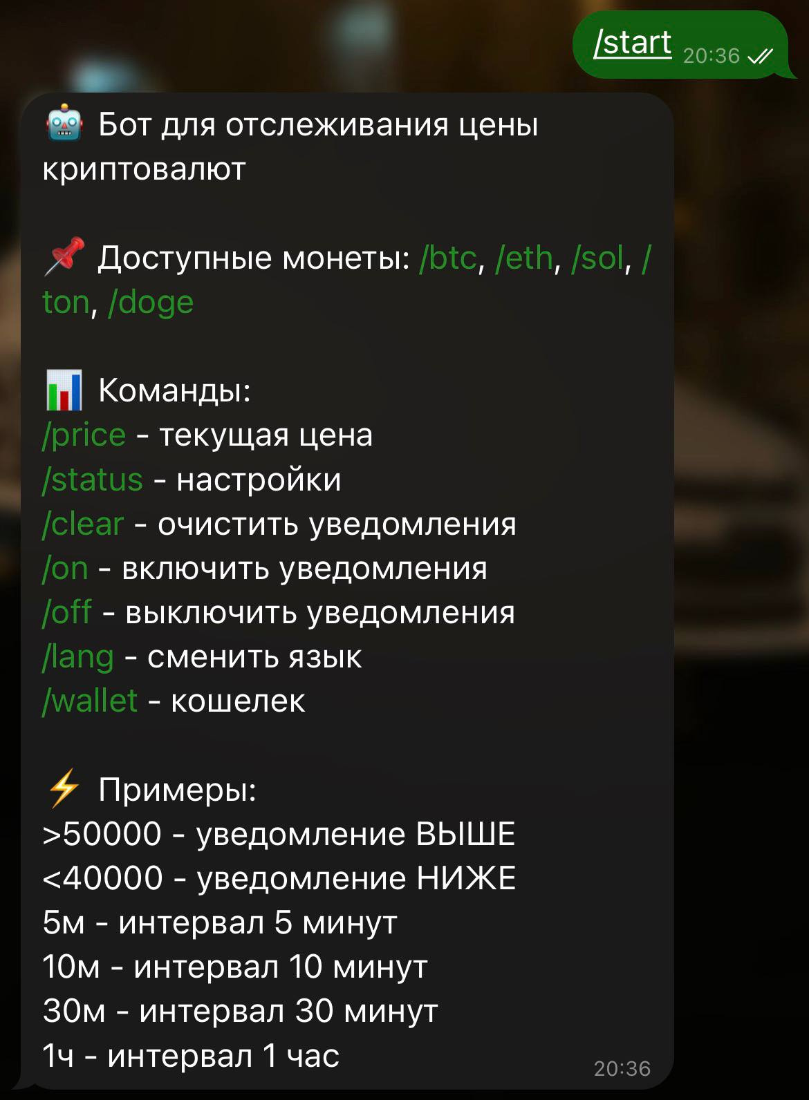 Бот для отслеживания цены криптовалют, подходит для трейдеров.