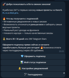 Продаю собственного Telegram-бота для автоматического отслеживания новых заказов на фриланс-биржах Kwork и FL.ru.