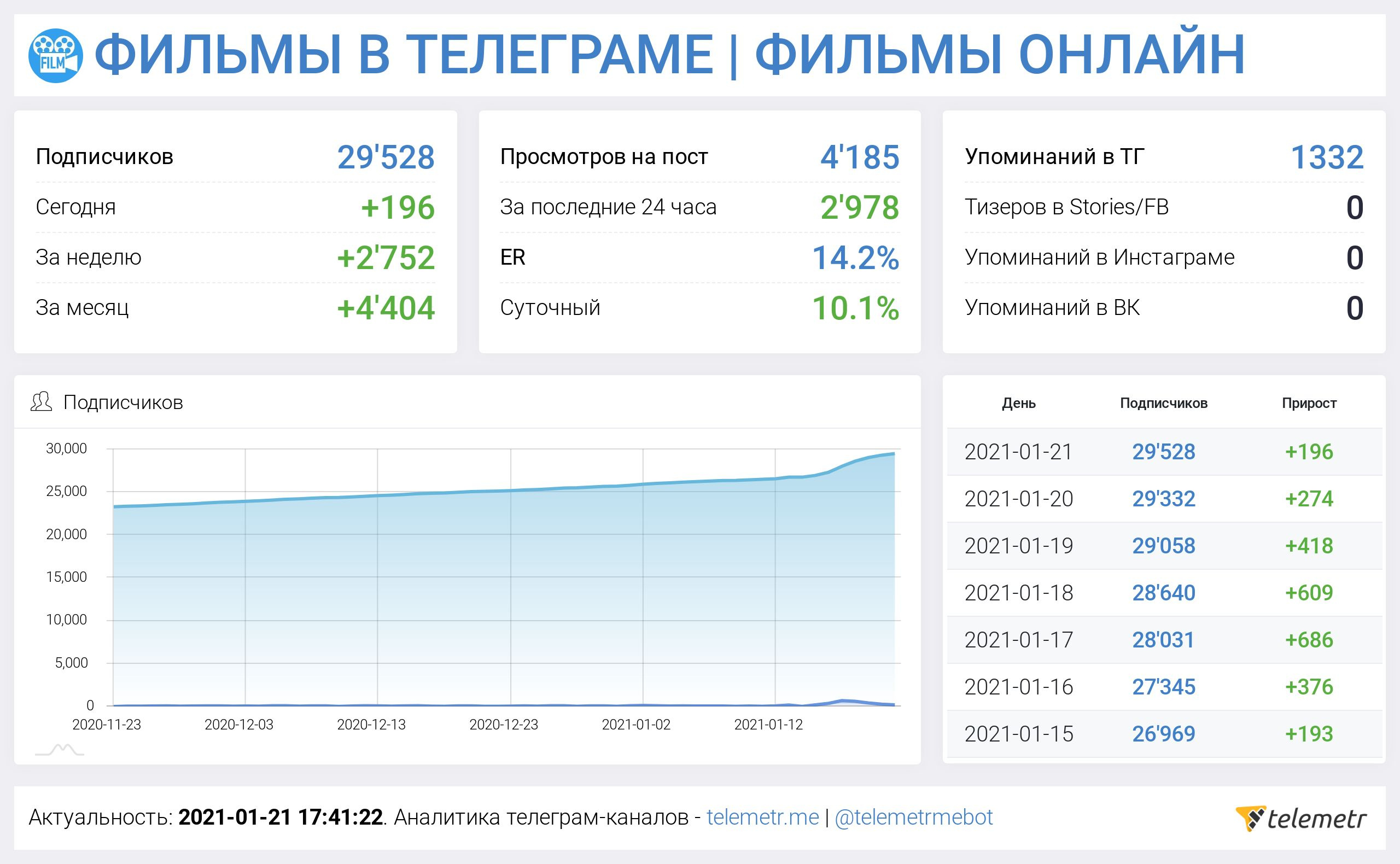 От куда пришли подписчики, живые они или нет. Всё есть в Телеметре.