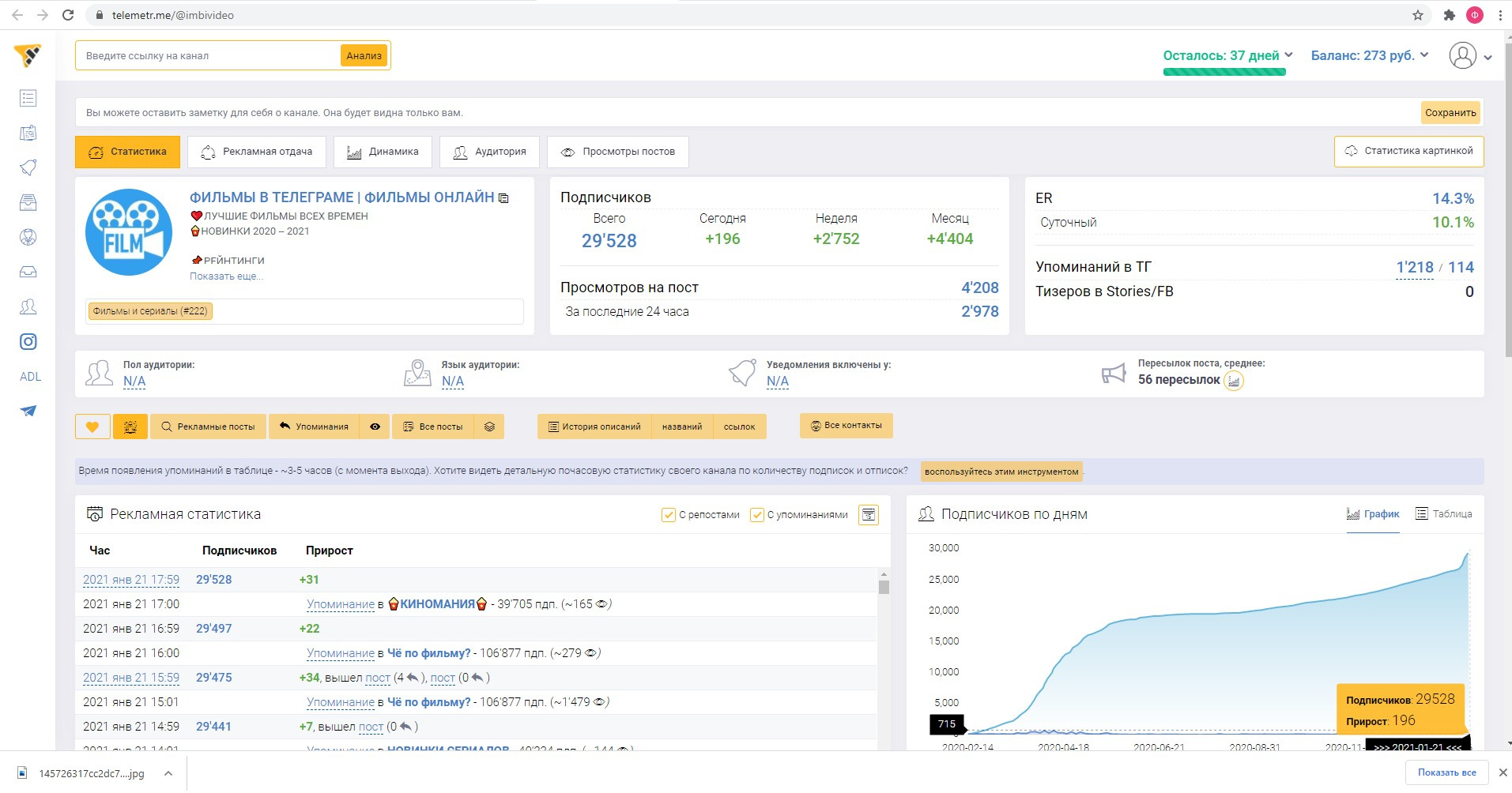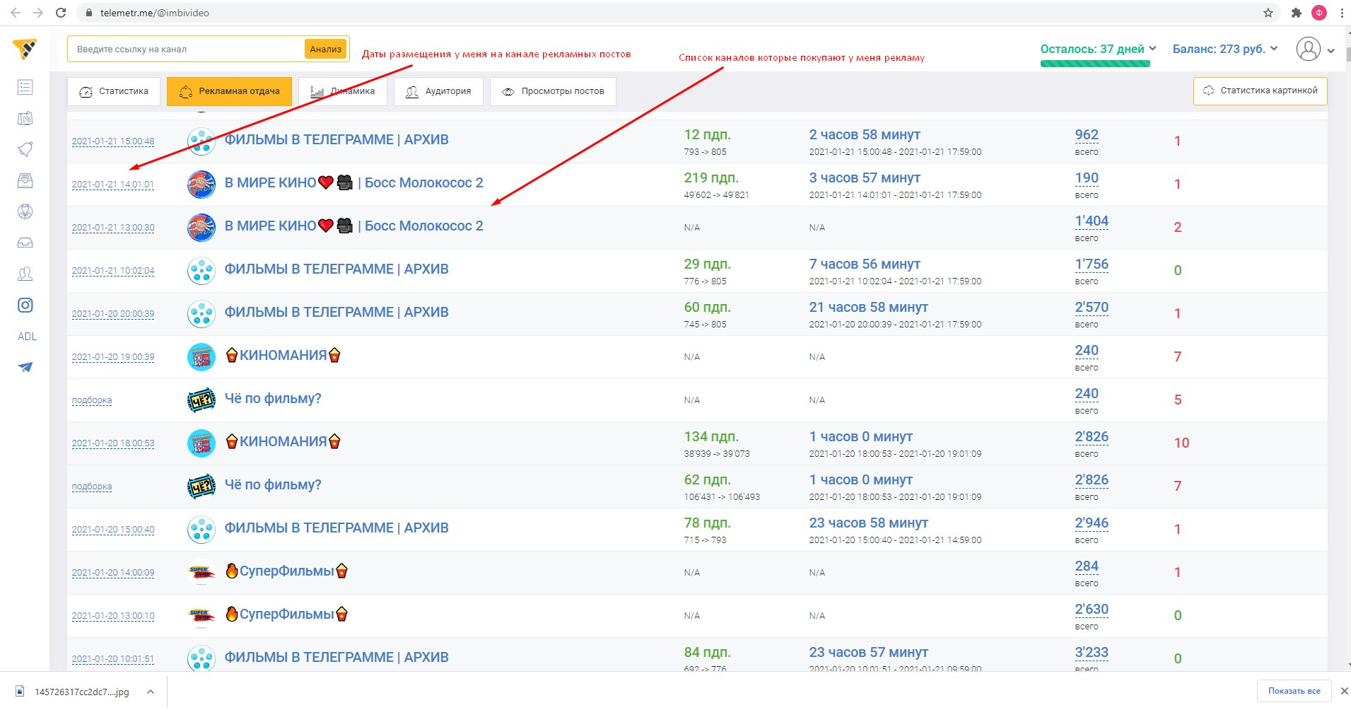В ней можно посмотреть сколько реально приносит канал и как часто у него покупают рекламу. Сейчас в среднем на канале выходит 3 рекламы в день, иногда 4 рекламы. Рекламы стоит от 1300 - 1700 руб, стоимость зависит от условий размещения, чем больше на канале висит рекламный пост, тем дороже. Я также прикрепил файл к этому лоту называется 3.jpg, в нем как раз видно часть этой статистики.