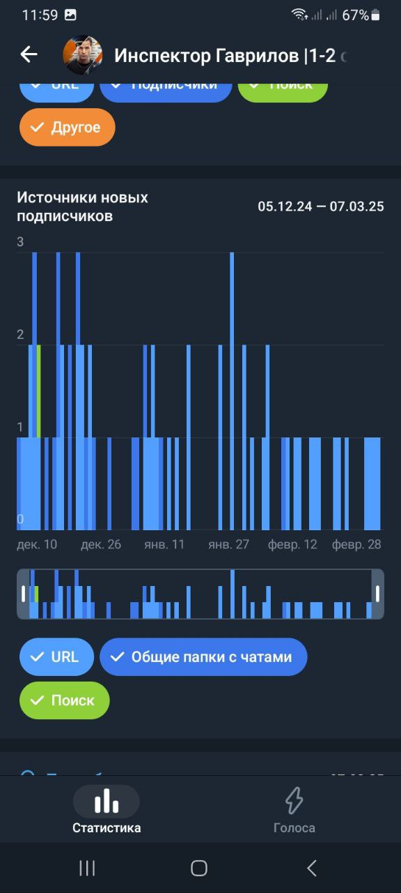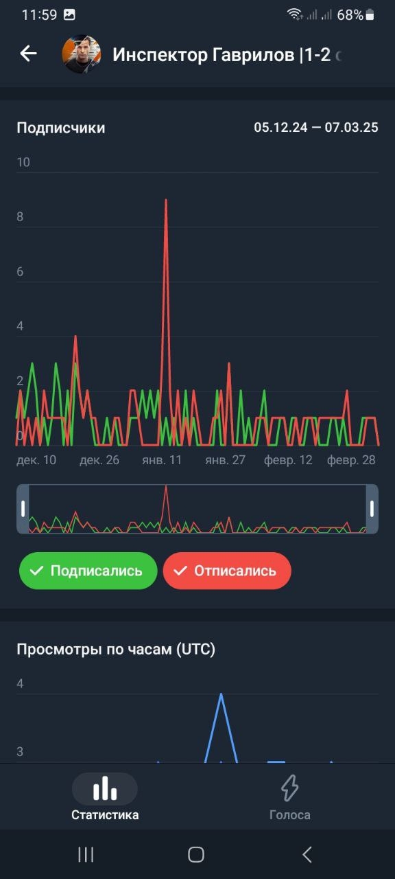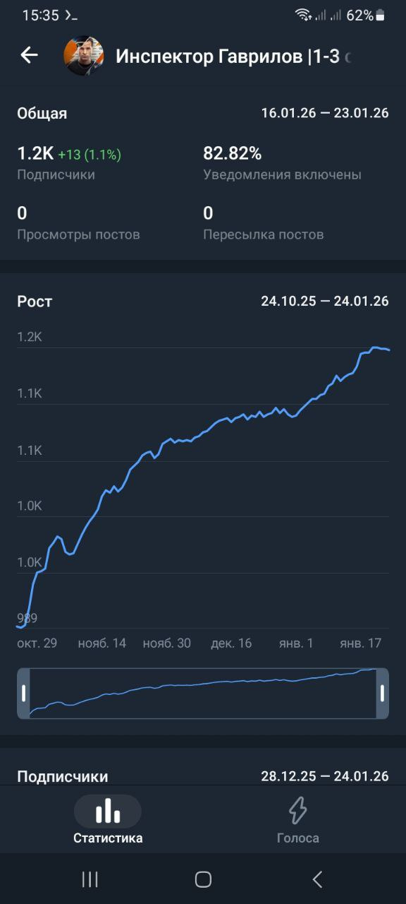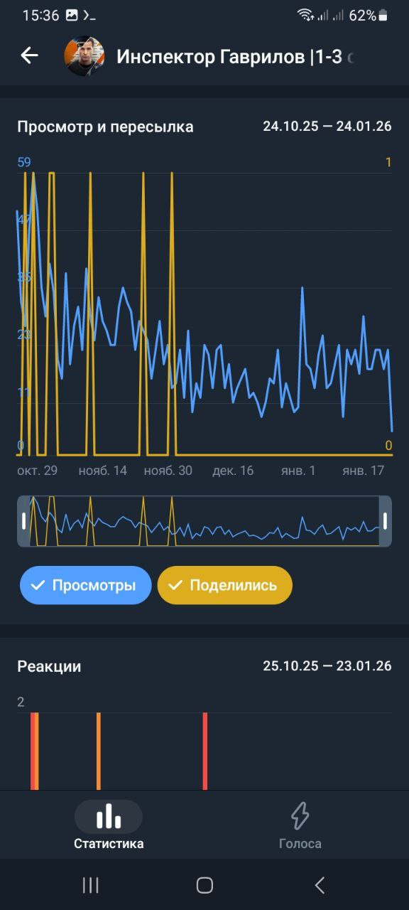 Статистика в телеметре https://telemetr.me/analytics/?name=https://t.me/inspector_gavrilov_serials