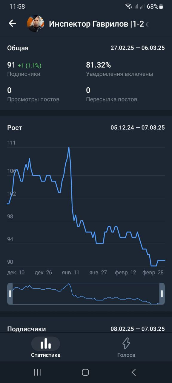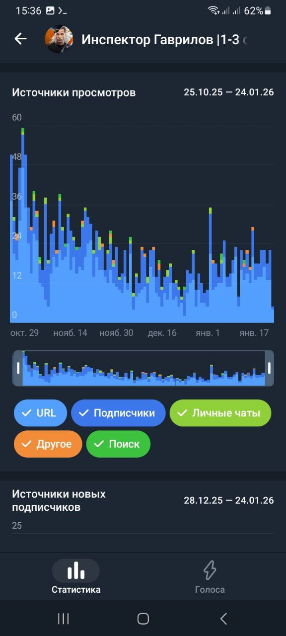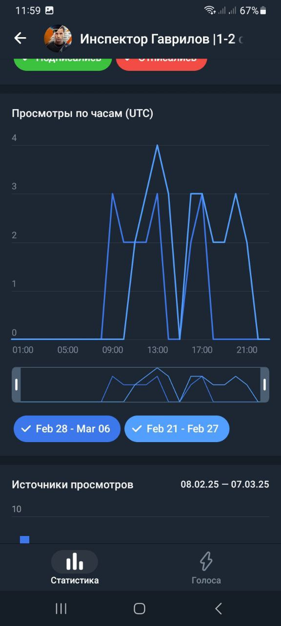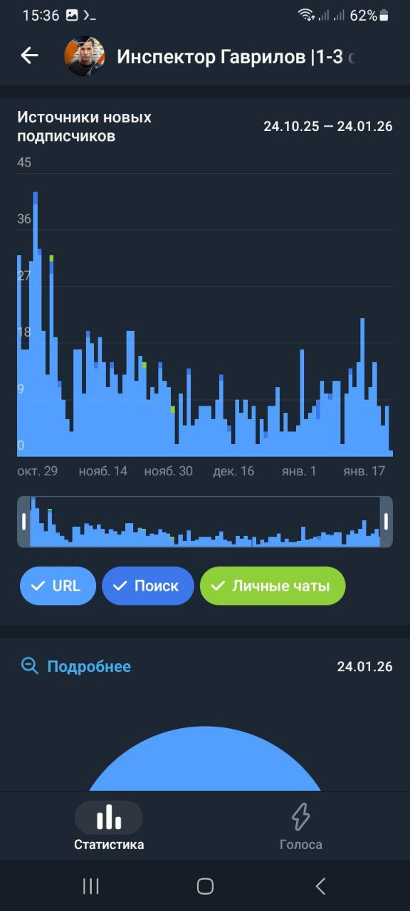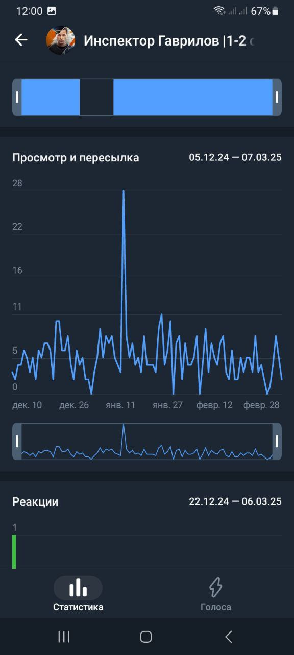 Статистика в телеметре https://telemetr.me/analytics/?name=https://t.me/inspector_gavrilov_serials