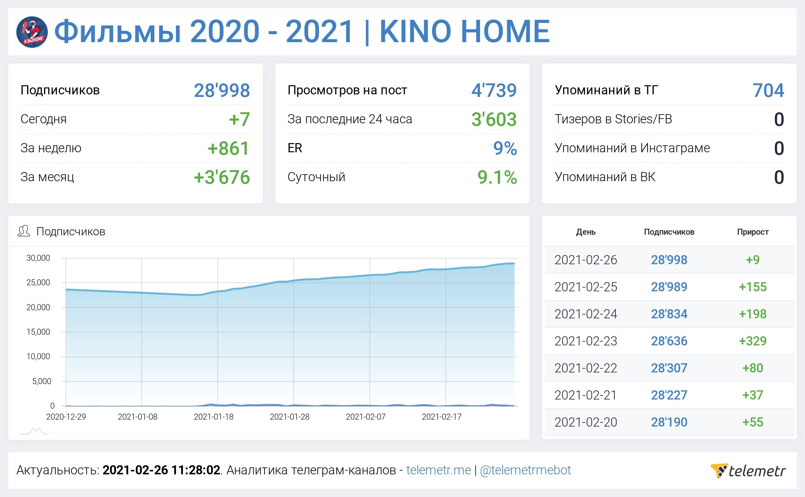 Телеграм канал с аудиторией более 28 000 человек в тематике «Фильмы»