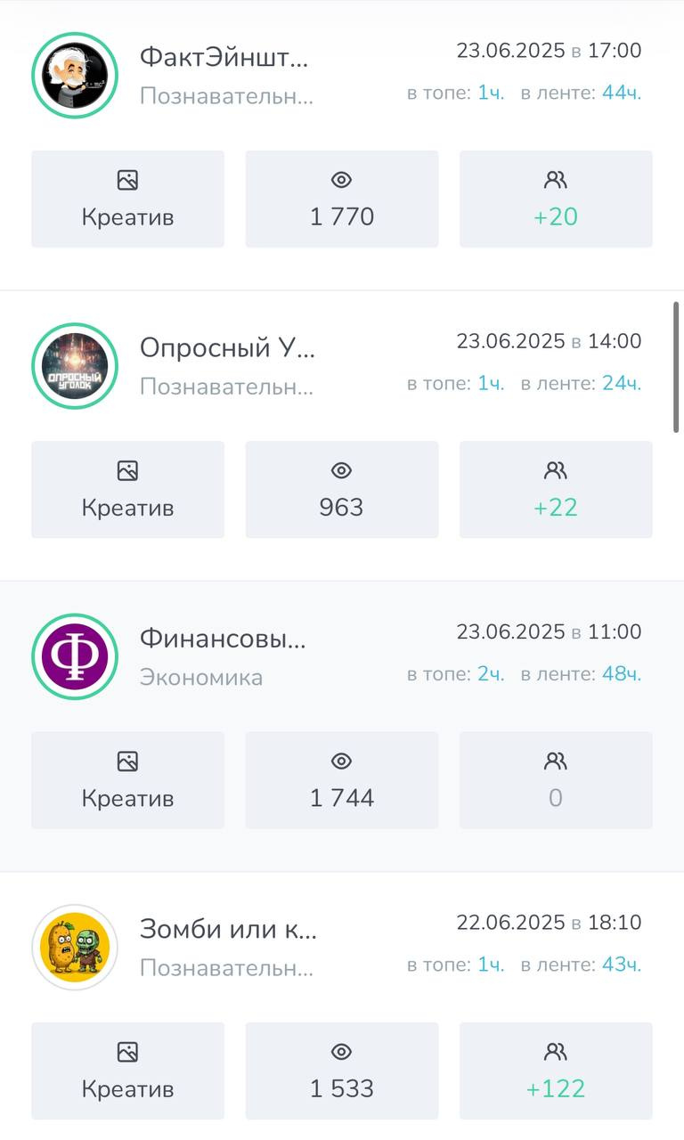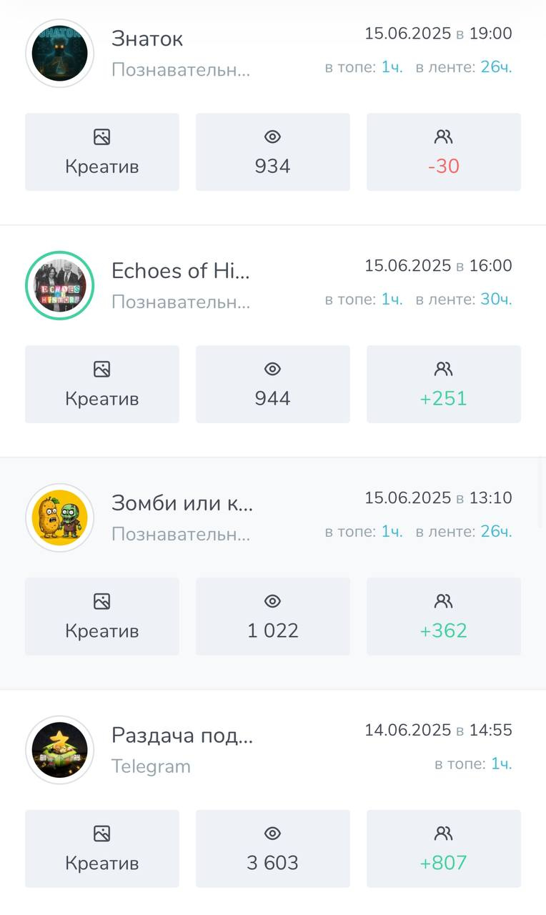 Канал заливался исключительно закупами рекламы внутри Telegram.