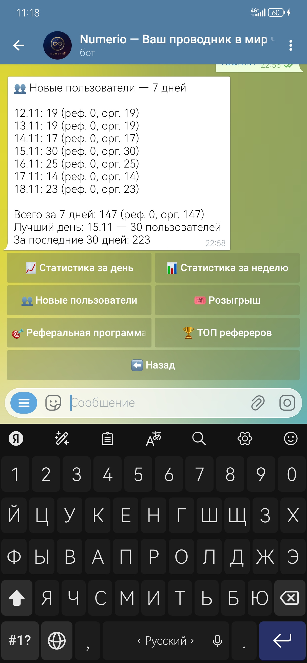 За последние 7 дней в боте: