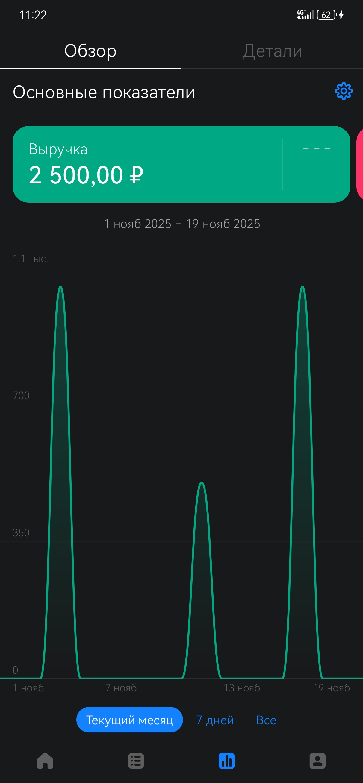 доход через YooKassa за ноябрь (1–19): 2 500 ₽