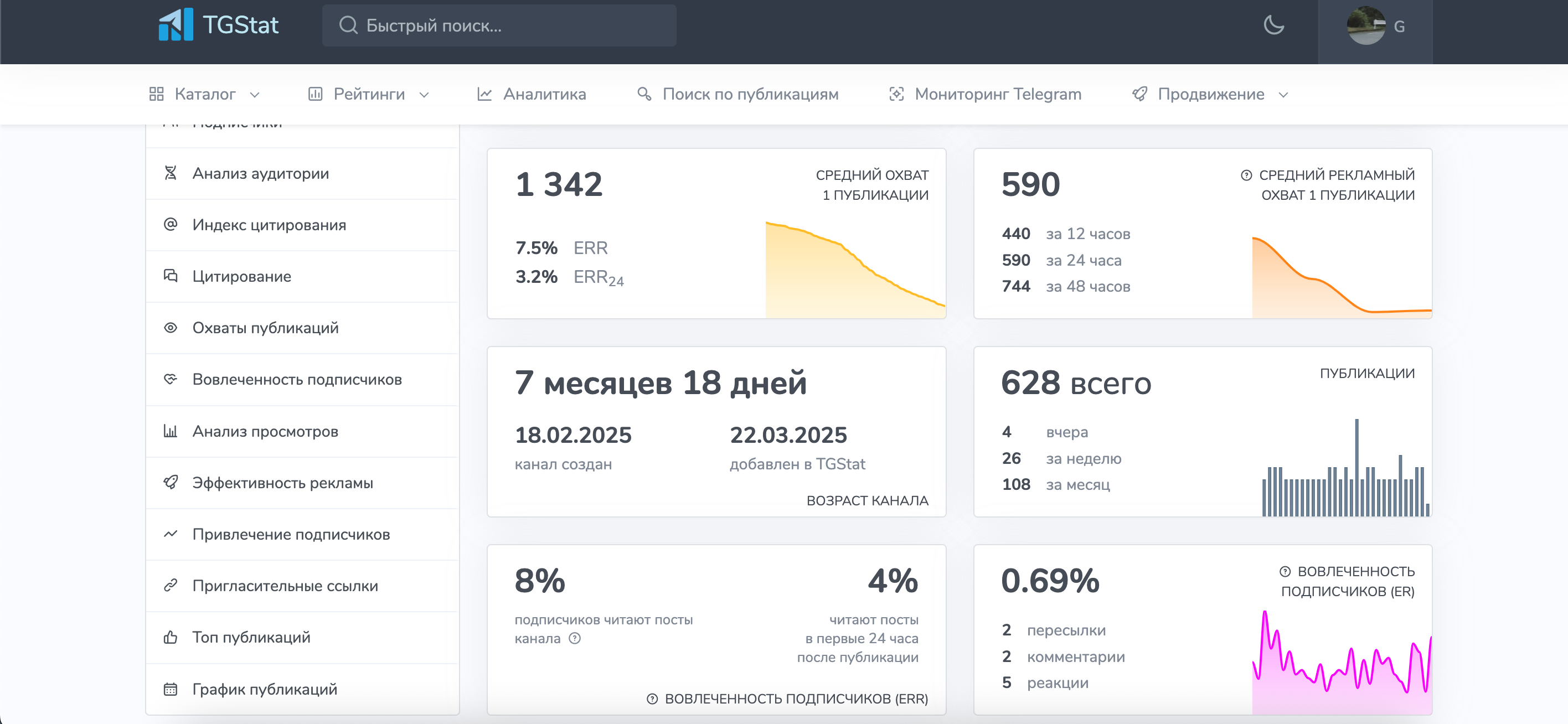 ✅ Подключен к TG Stat и Telemetr