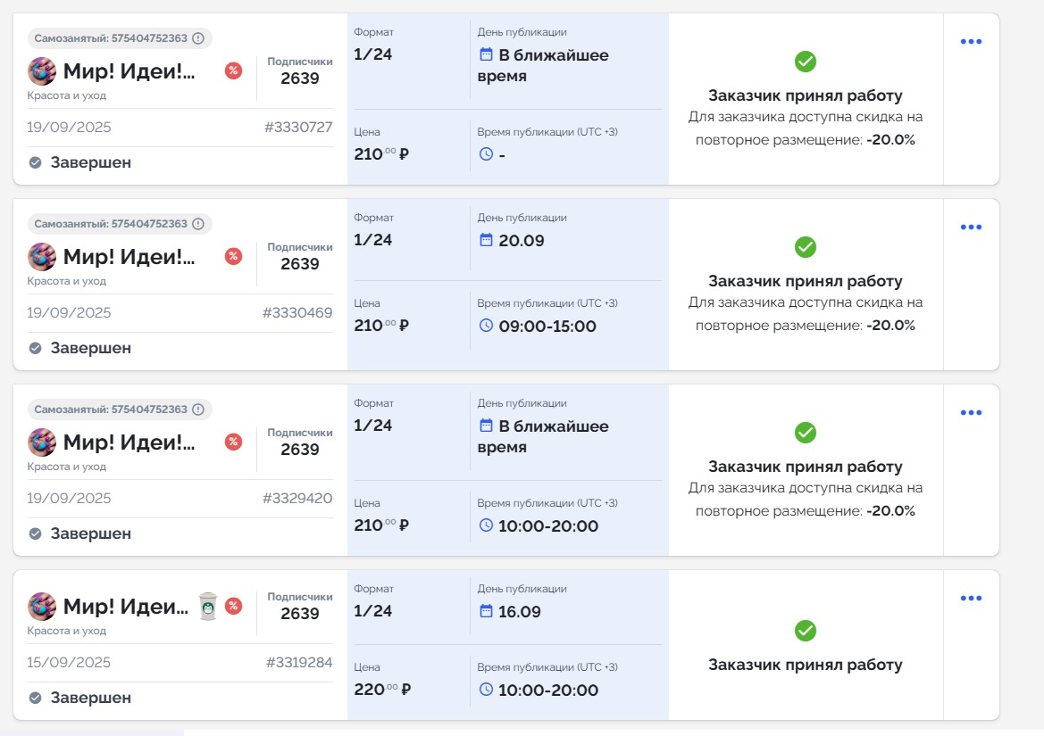 Смотрите ниже скрин с продажами рекламы с биржи telega.in.