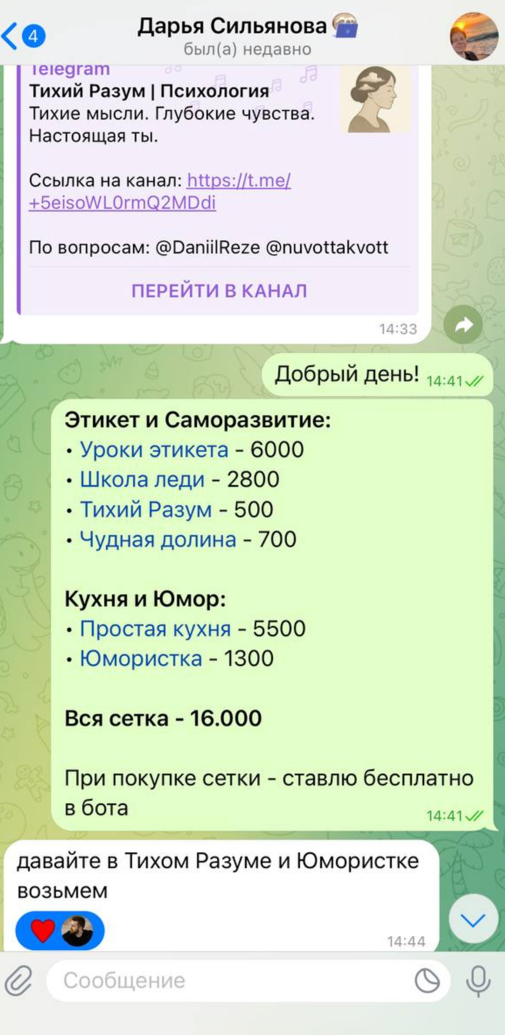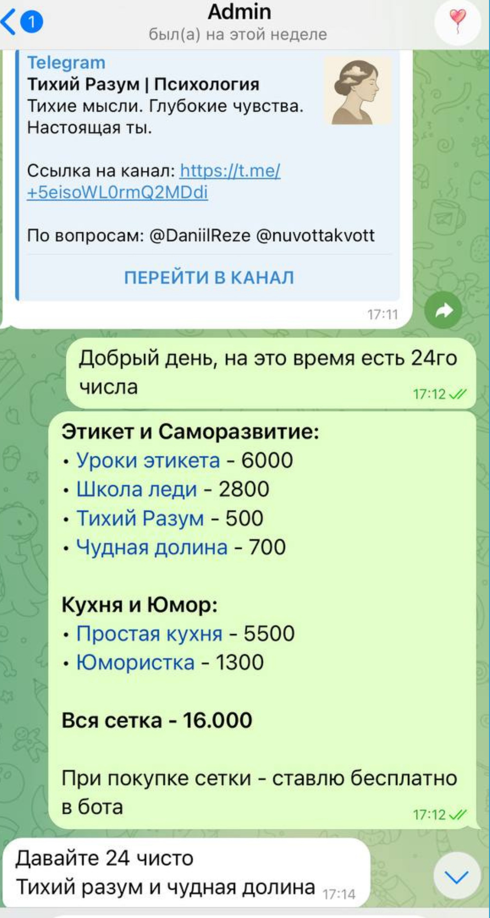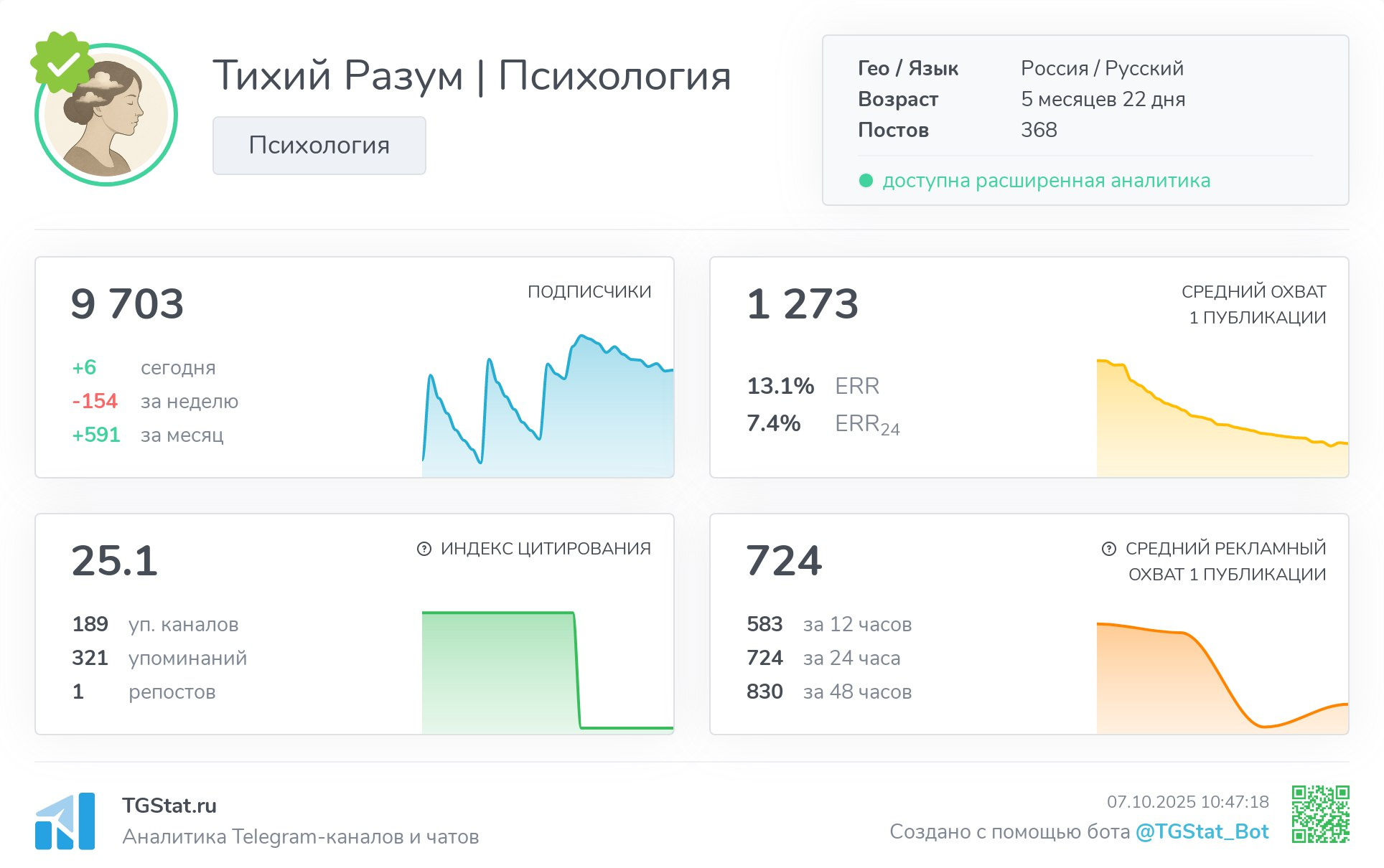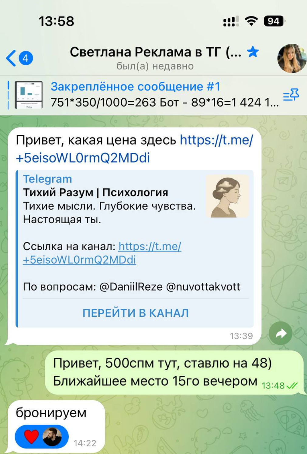 ➡️ Тихий Разум/Психология. Тематика одна из самых удобных для ведения и простых для закупа рекламы тематик в Telegram.