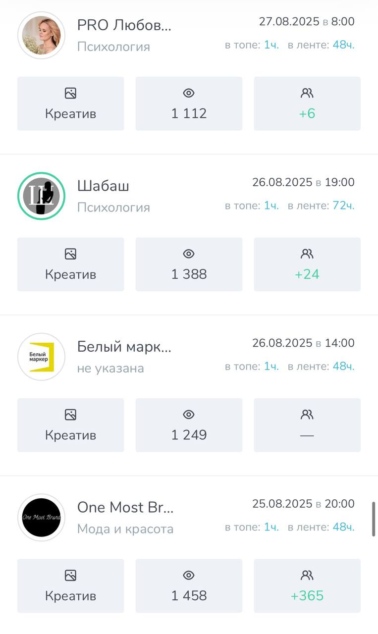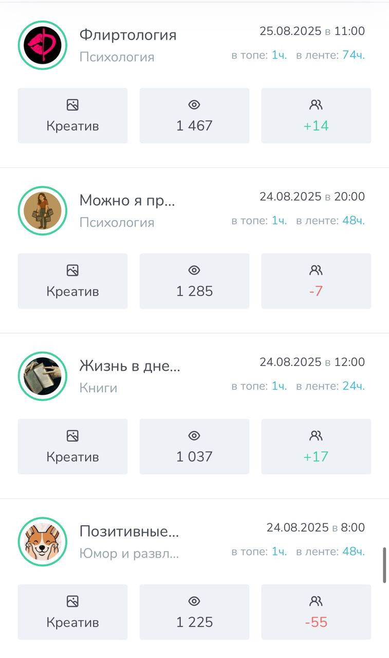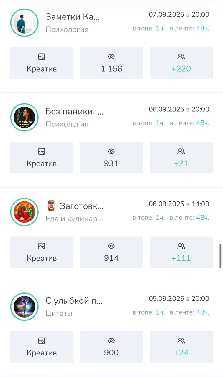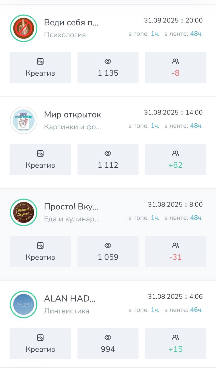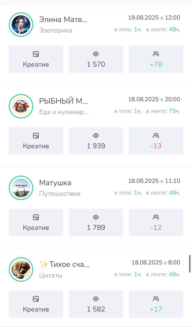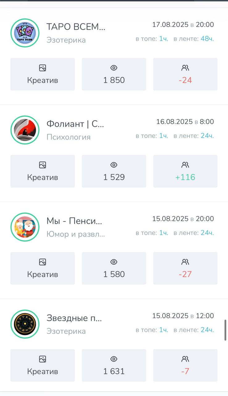 ➡️ Все мои каналы пользуются спросом у рекламодателей т.к во всех каналах качественная аудитория и хорошая отдача.