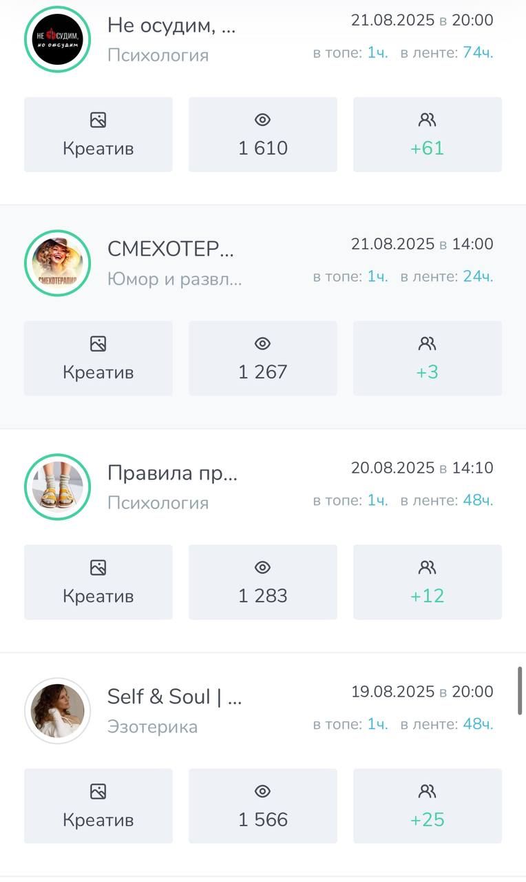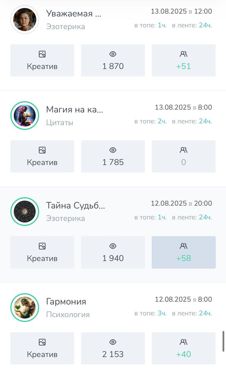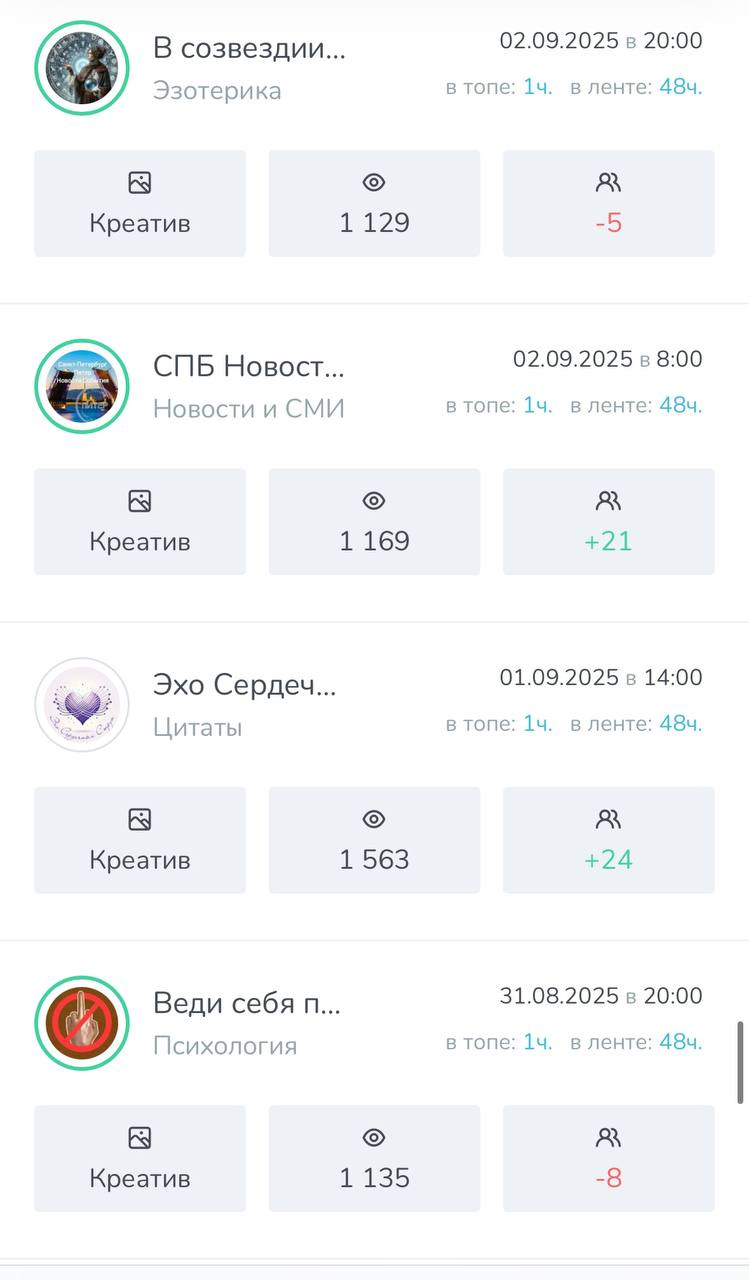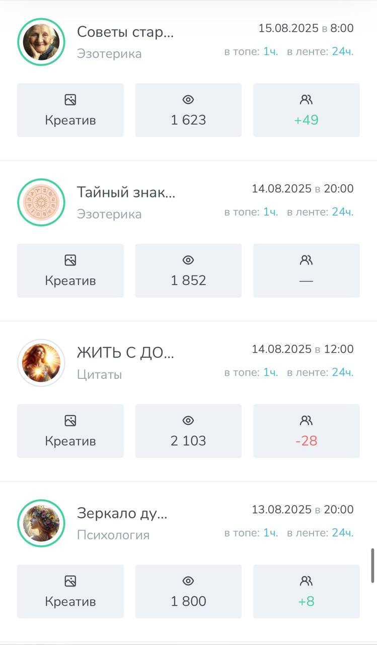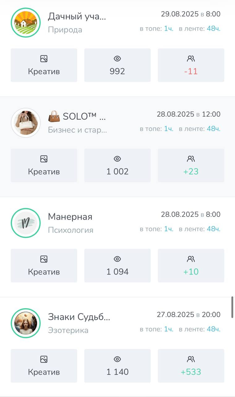 ➡️ Все мои каналы пользуются спросом у рекламодателей т.к во всех каналах качественная аудитория и хорошая отдача.
