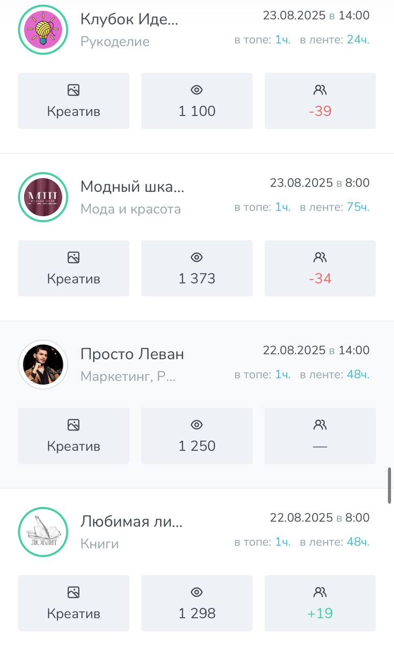 ➡️ Площадка автоматчики размещает рекламу в установленные интервалы.