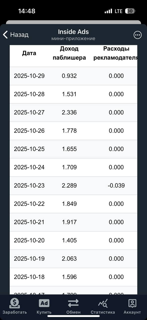 - InasaidADS 53$ за октябрь Все скриншоты прикреплены
