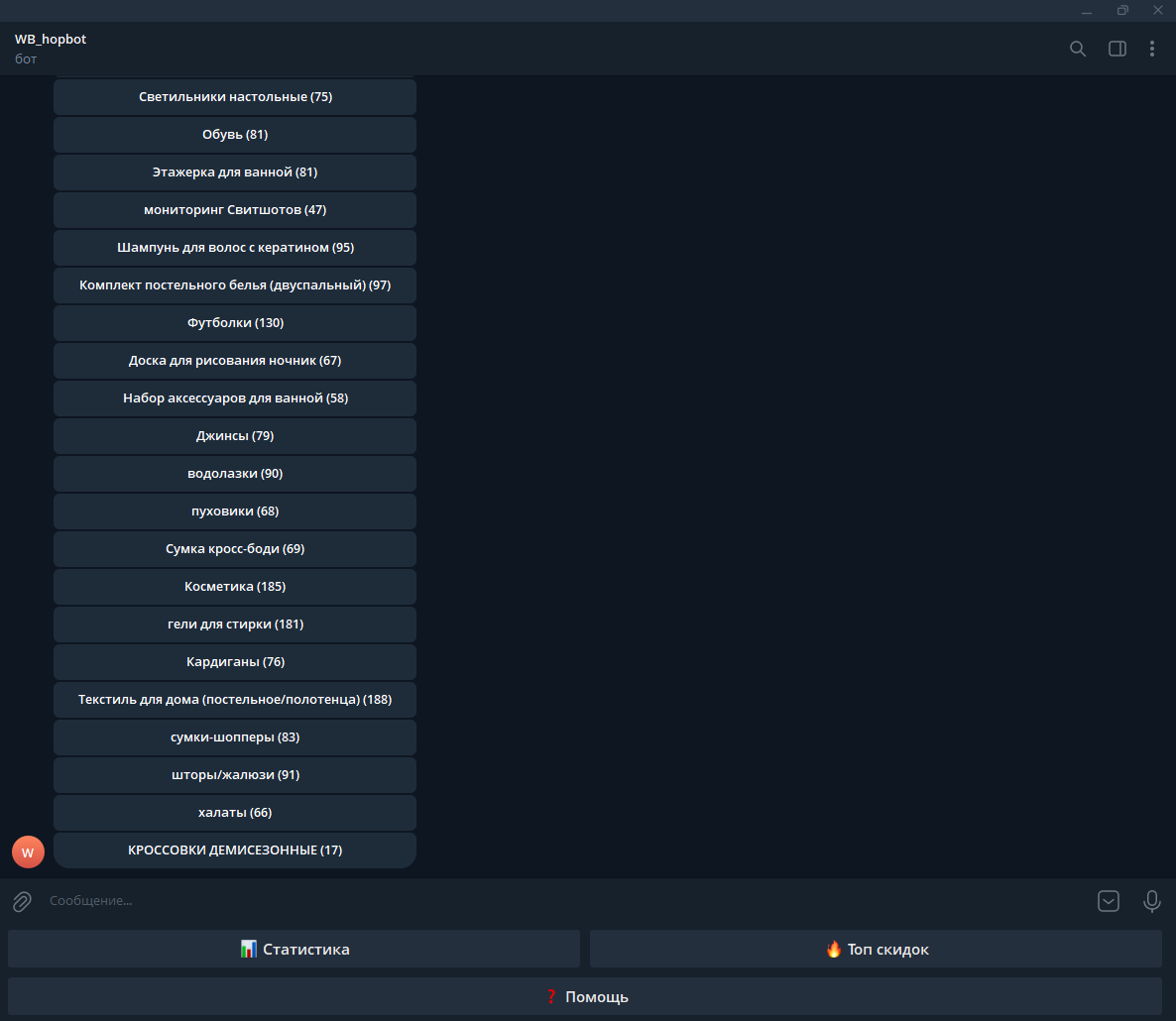 продам проект мониторинг скидок по wildberries скрипт + бот + канал.