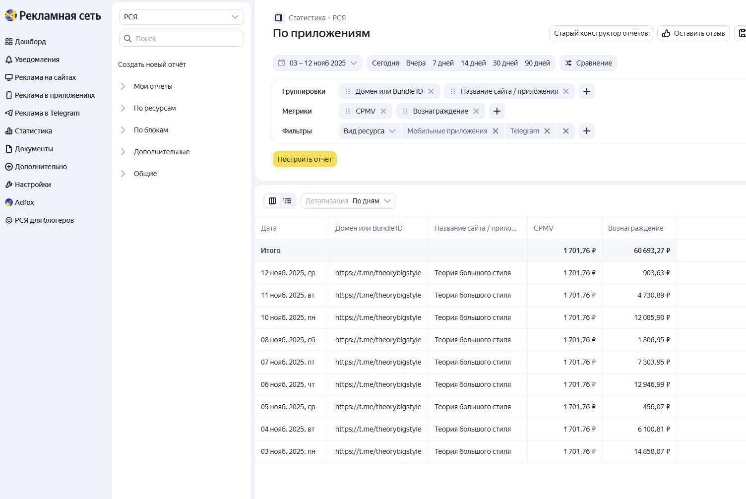 В ноябре (10 дней) пока купили прямой рекламы на 58к и в РСЯ с биржи 60к