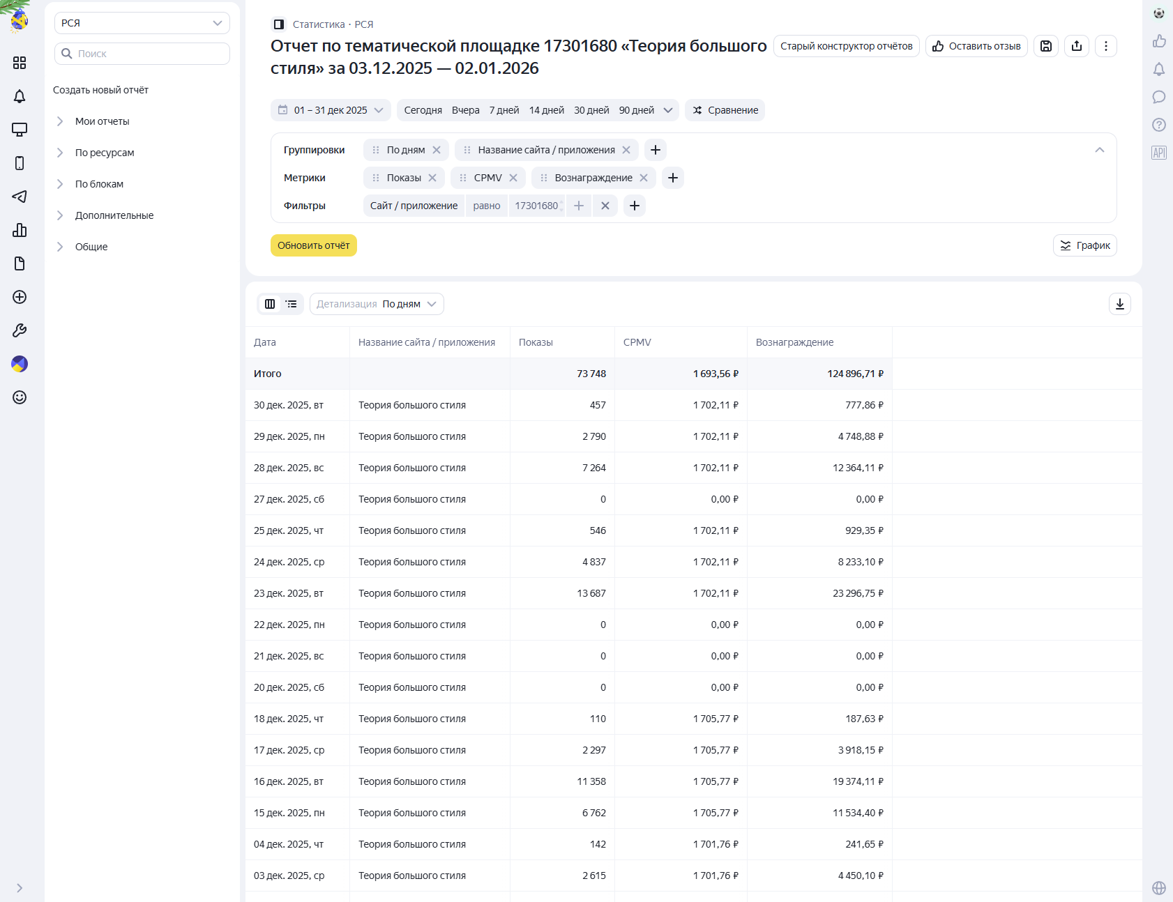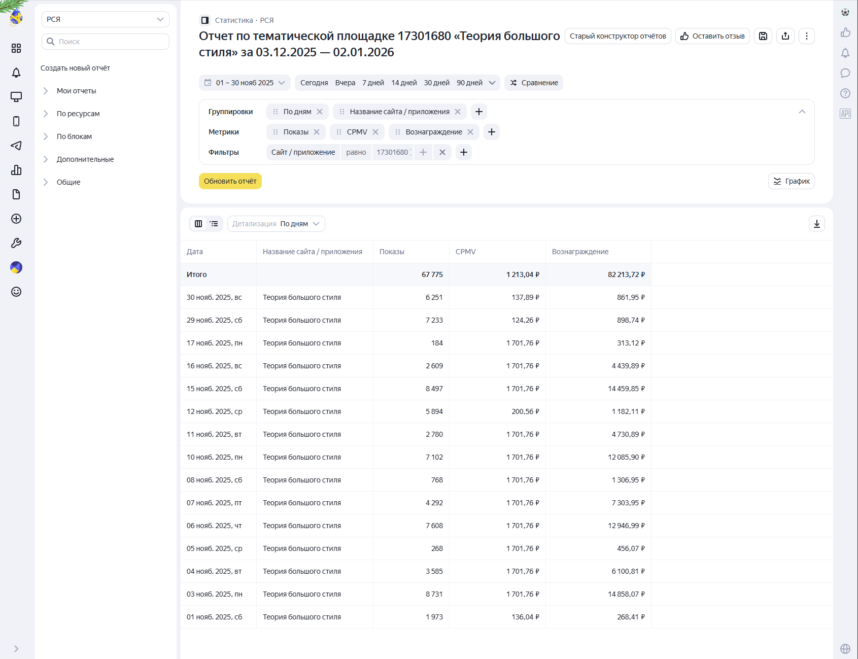 Декабрь - 555к (РСЯ - 125к, прямые - 430к)