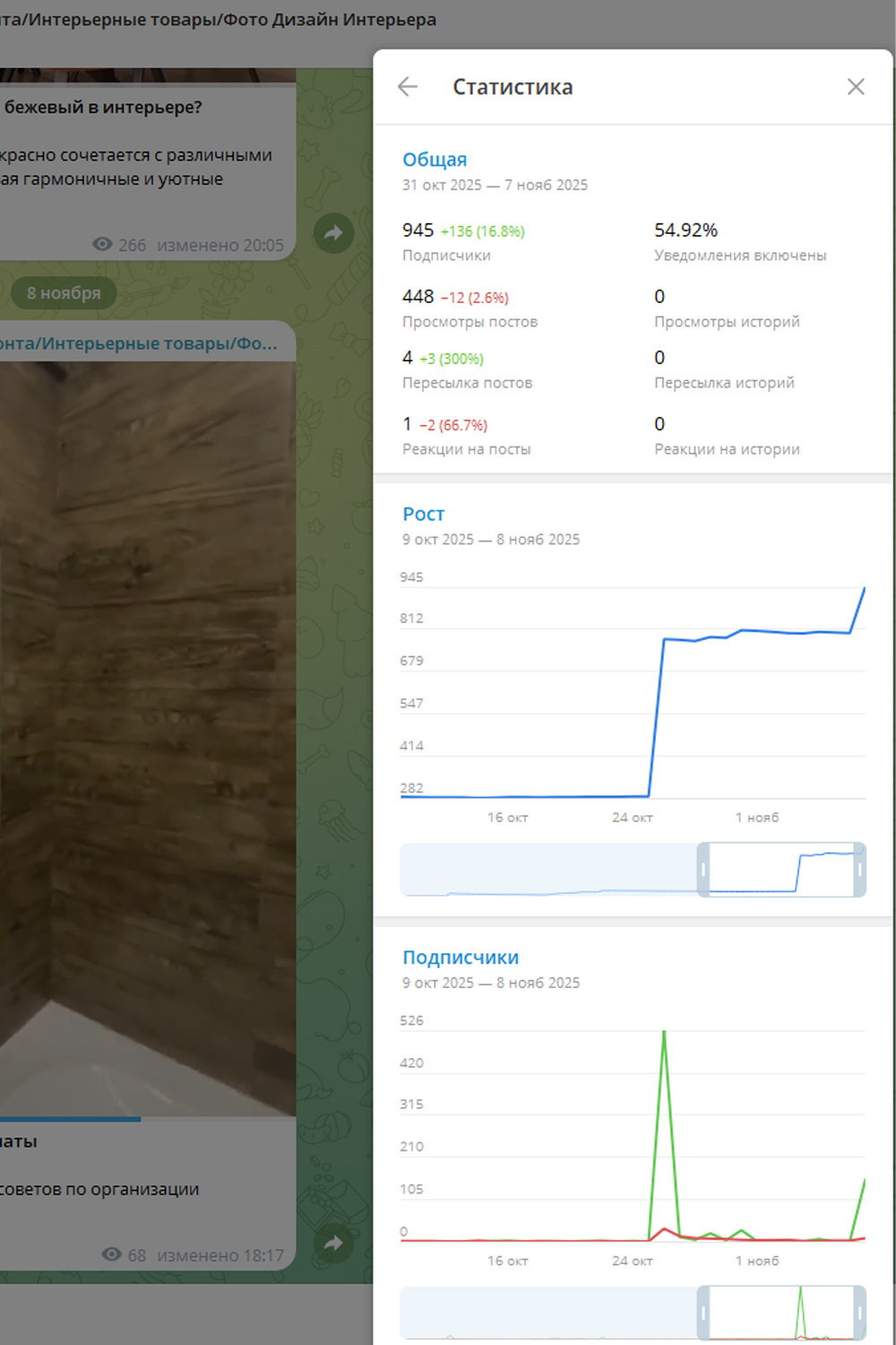 Продаю канал тематики дизайн интерьера с активной аудитрией. Заливаю канал с Яндекс Директа - есть видео обзоры и этапы как это делая так как занимаюсь настройкой Яндекс Директа на Телеграм. Рекламу не размещал - аудитория прям целевая не заспамленная.