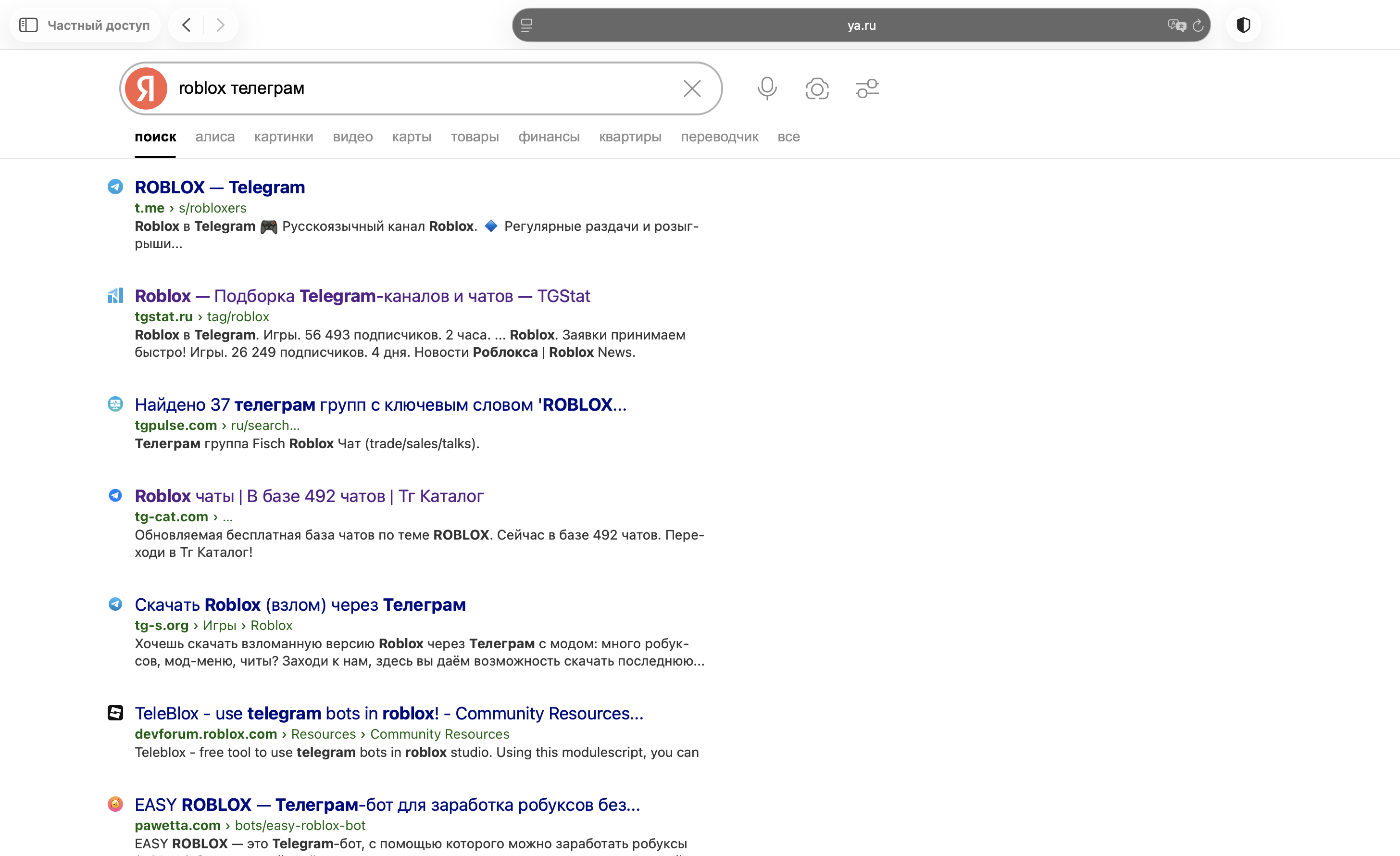 УНИКАЛЬНОЕ ПРЕИМУЩЕСТВО — БЕСПЛАТНЫЙ ТРАФИК (SEO): Канал занимает 1-е место в поиске Яндекса и Google по ключевому запросу «Roblox Telegram» (можете проверить сами).