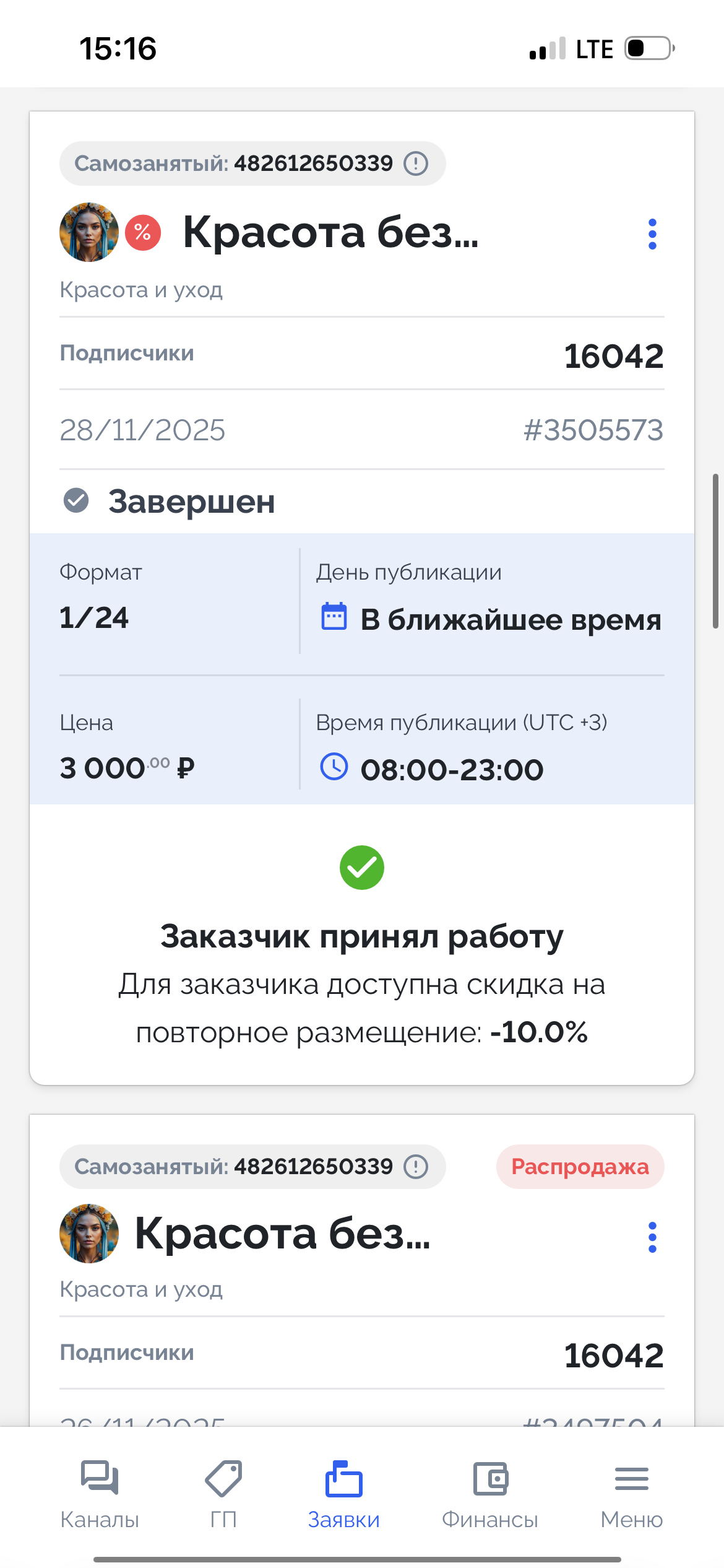 50–60 рекламных постов ежемесячно (продаю по 2 в день) + 20 размещений в сторис