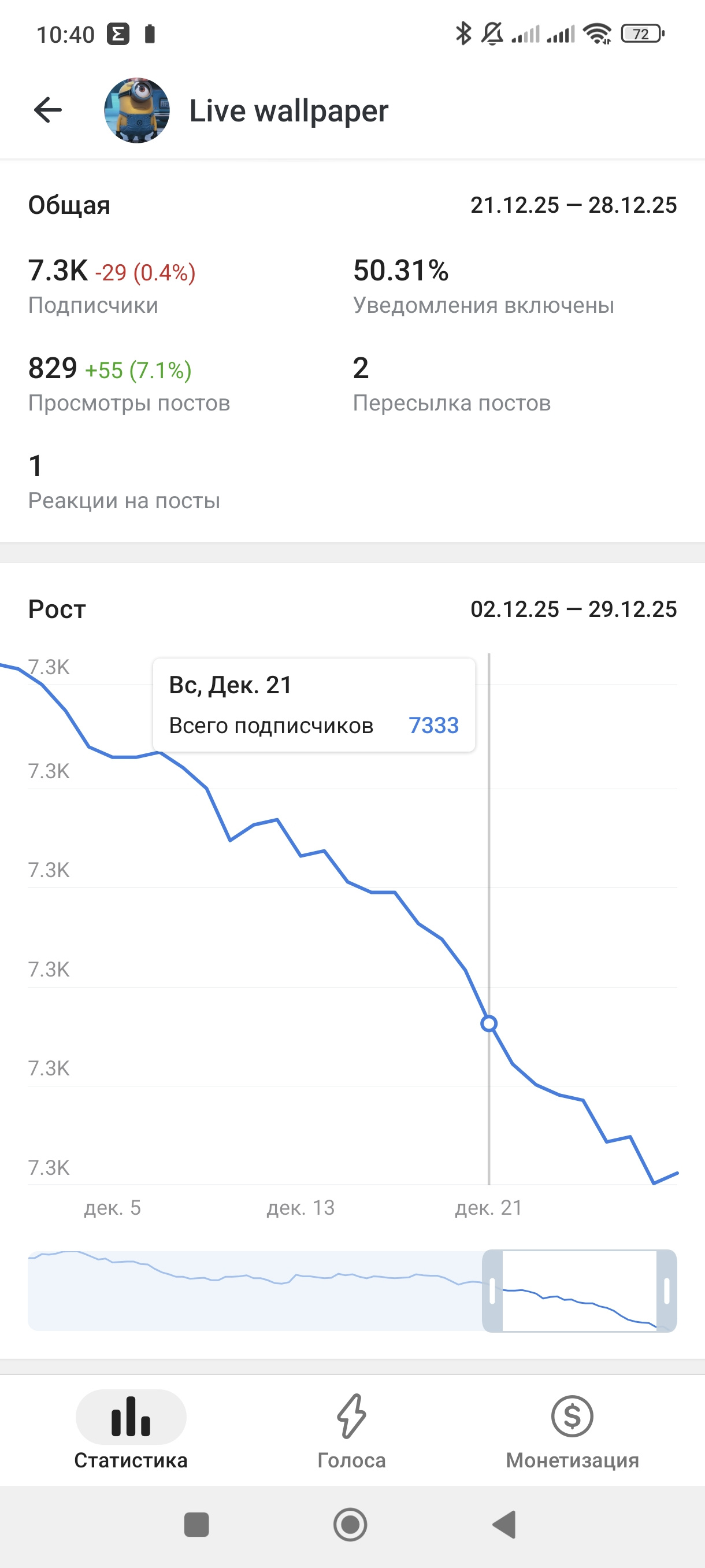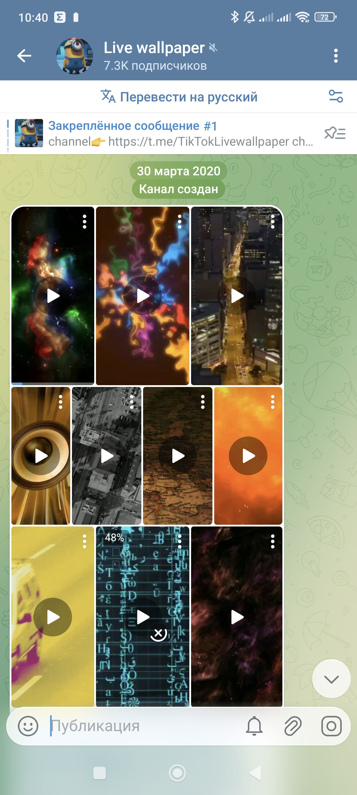 Канал Live wallpaper — это профиль с регулярной подборкой живых обоев и фоновых анимаций высокого качества, адаптированных для смартфонов: 4K‑изображения, короткие loop‑видео и тематические стенки (аниме, природа, минимализм, абстракция и т.д.), которые удобно скачивать и устанавливать на экран блокировки и рабочего стола. Из-за нехватки времени стал реже его вести, поэтому решил продать