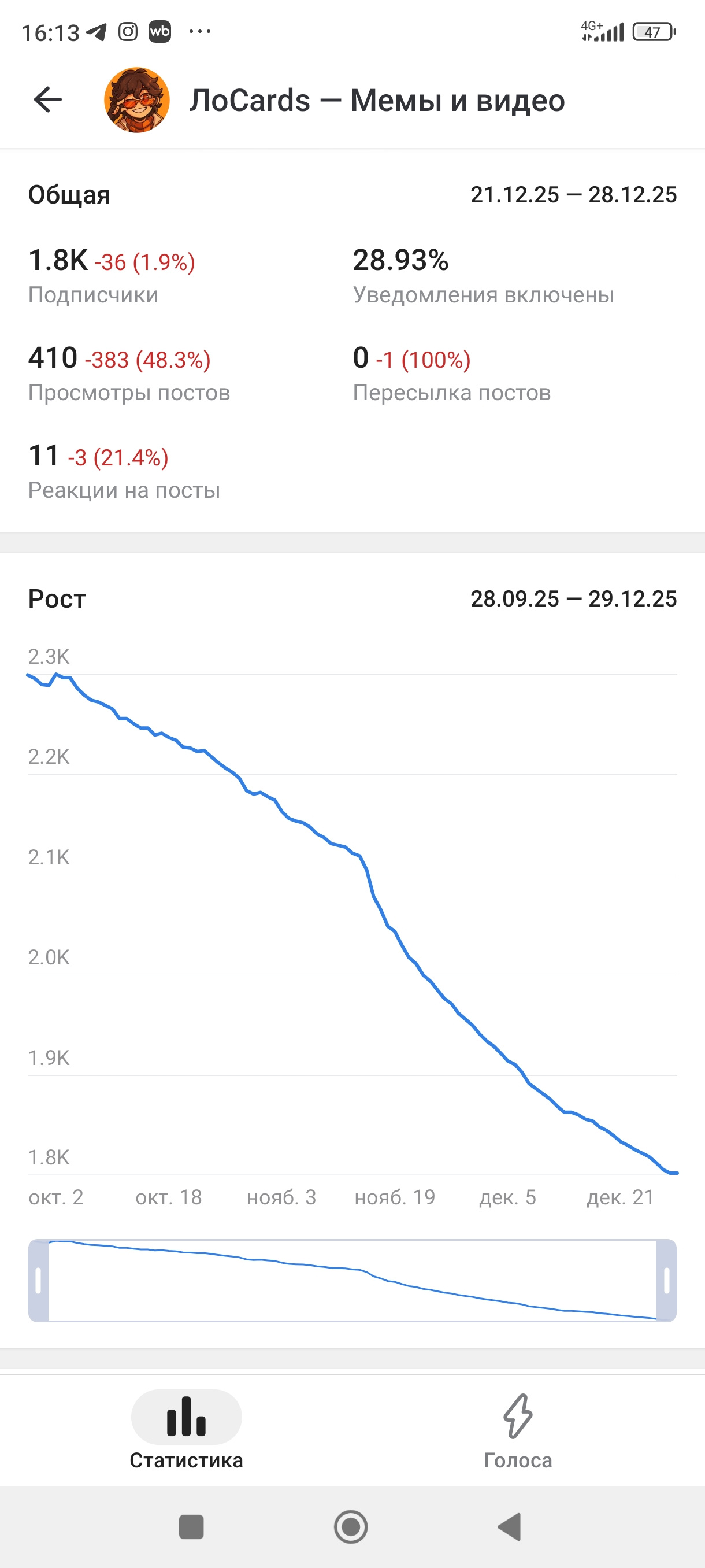 Стабильный рост. Канал демонстрирует устойчивый прирост подписчиков и охватов без накруток.