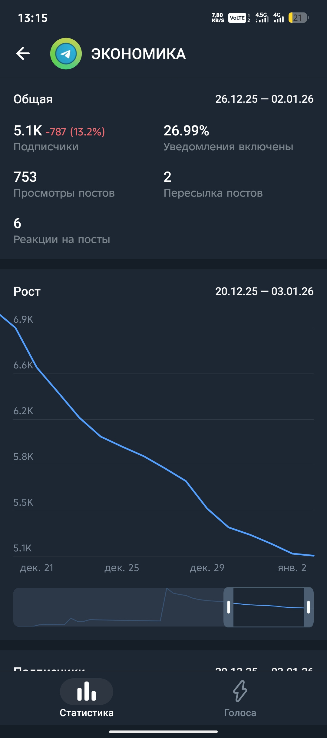 Канал econom7c посвящен экономической тематике: здесь публикуются актуальные новости о финансах, рынках, инвестициях и бизнес-трендах, с акцентом на аналитику и практические советы для понимания глобальных и локальных экономических процессов. Специфика канала — в лаконичных постах с инфографикой, предвидениями и обзорами, которые помогают ориентироваться в сложных темах без лишней воды, делая контент полезным для ежедневного чтения. Целевая аудитория — предприниматели, инвесторы, финансисты и все, кто интересуется экономикой: от владельцев малого бизнеса до профессионалов рынка, ищущих свежие инсайты для принятия решений. Канал привлекает стабильным ростом аудитории, высоким вовлечением (активные просмотры и репосты), лояльными подписчиками и потенциалом монетизации через рекламу или партнерства — это готовый актив с проверенной нишей, где контент уже формирует доверие и сообщество. Пишите в личку, задавайте вопросы по проекту — обсудим детали и поможем принять верное решение о покупке.