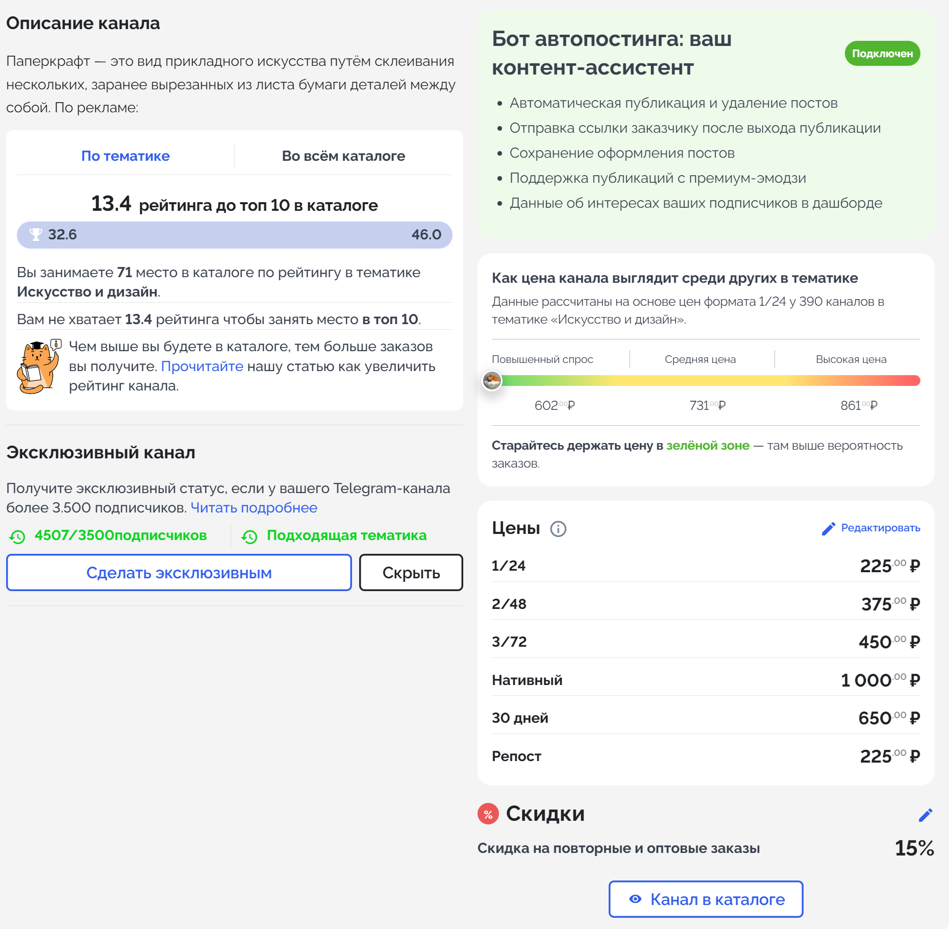 Покупал канал здесь же. Думал, что буду заниматься. Но понял, что не мое.
