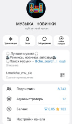 Музыкальный канал, который регулярно публикует свежие треки, популярные песни, ремиксы и трендовые хиты. Специфика канала заключается в подборках современной и актуальной музыки с акцентом на современные музыкальные тренды и разнообразные музыкальные стили, которые востребованы широкой аудиторией.