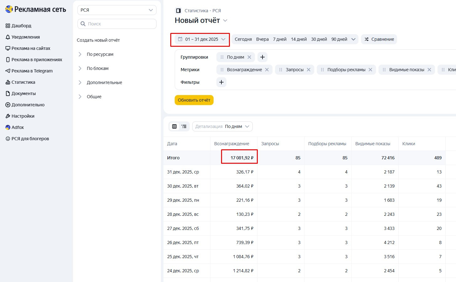 Монетизировался канал полностью в РСЯ (их бот сам публикует и удаляет маркированную рекламу). Канал есть в РКН.