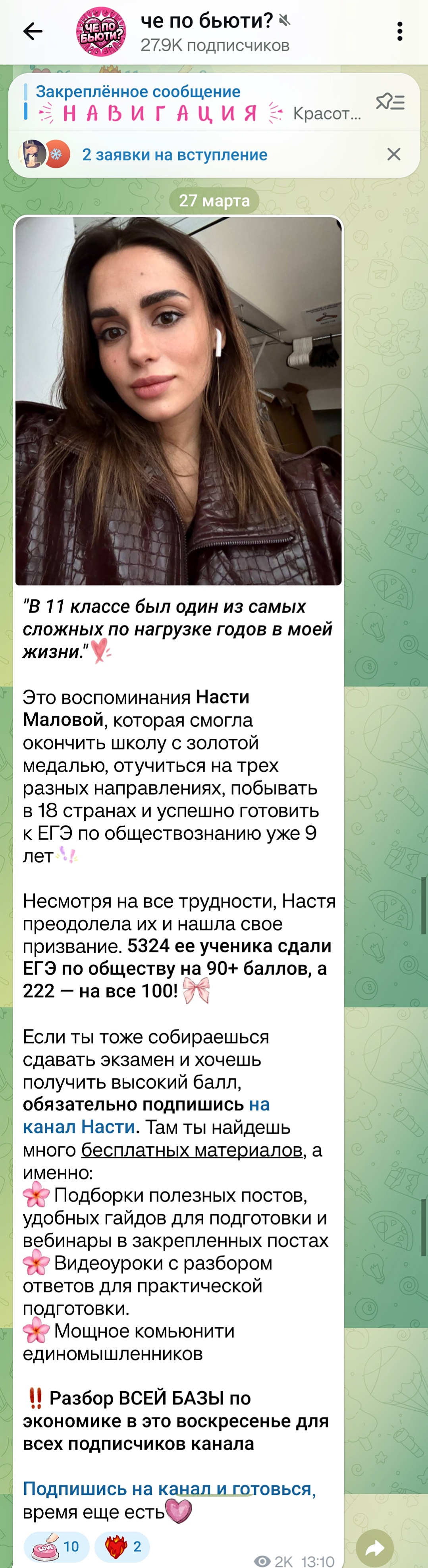 Основными клиентами являются другие жца каналы, различные крупные онлайн школы, репетиторы, курсы, а также товары Озон и Вайлдберриз, производители и бренды косметики. Данные рекламодатели являются внешними (кроме других тг каналов) и готовы покупать рекламу дорого.
