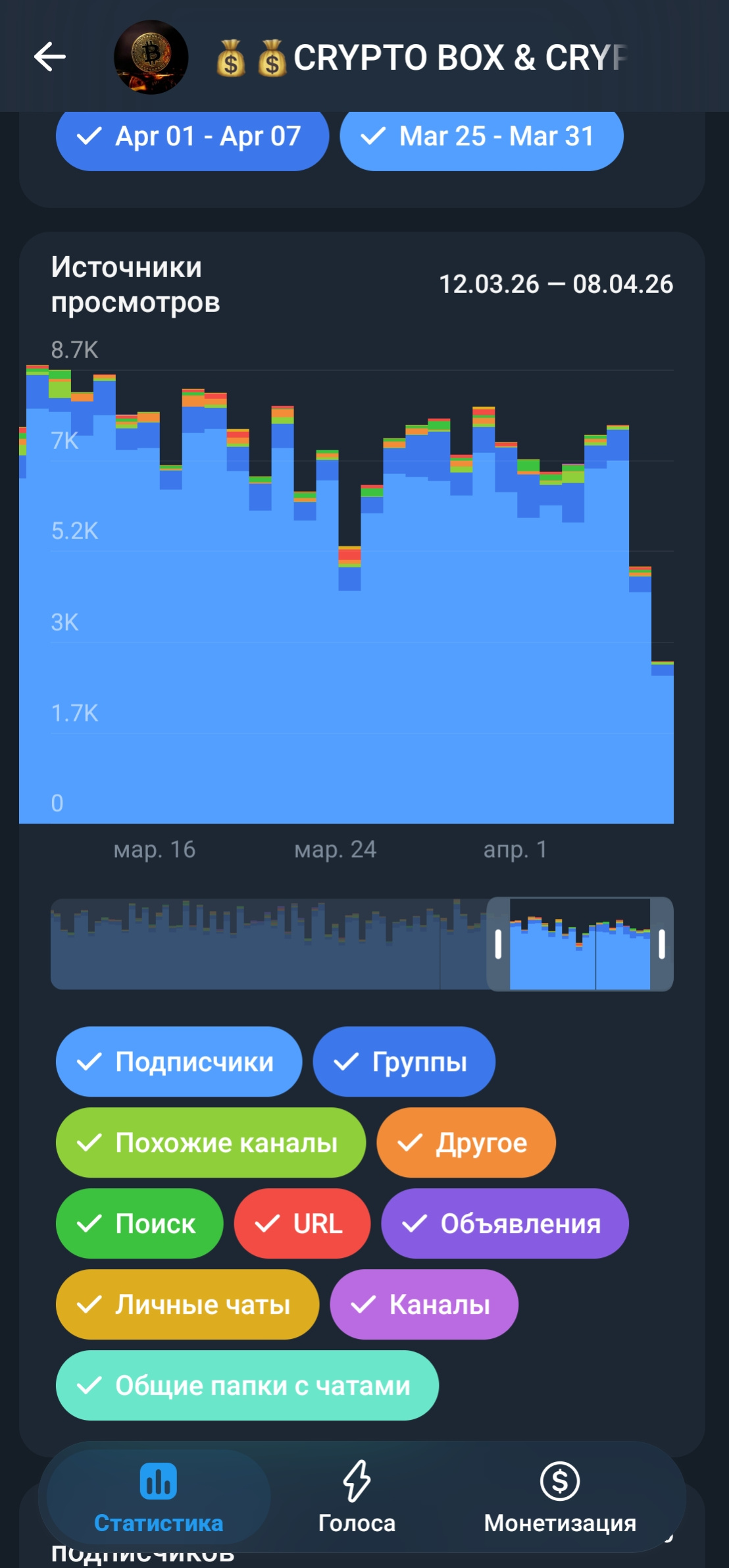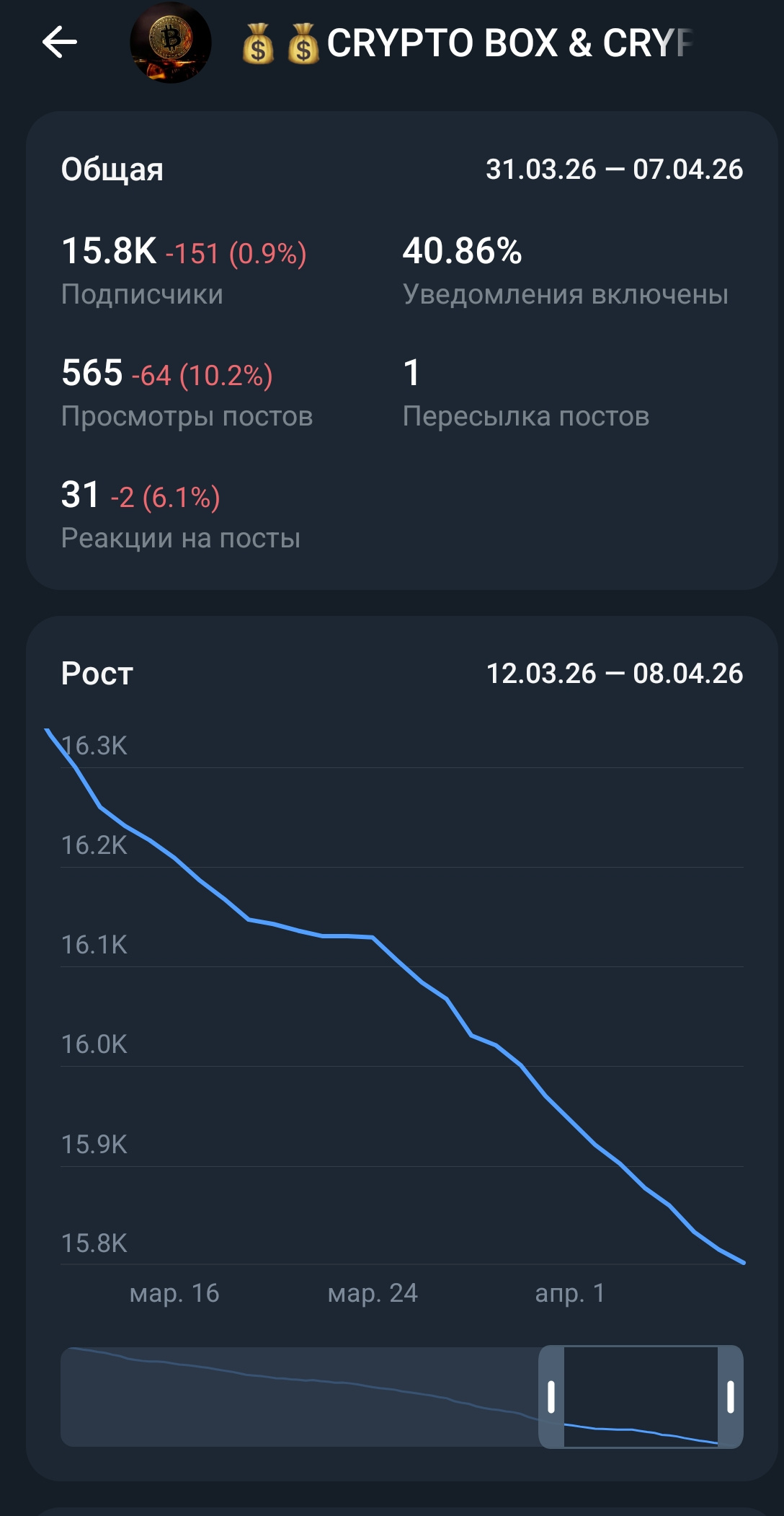 Канал ????????CRYPTO BOX & CRYPTO BOX???????? специализируется на публикации свежих криптобоксов от ведущих бирж Binance и Bybit — это удобная функция для отправки криптовалютных подарков друзьям без комиссий, где пользователи создают коробки с токенами и делятся кодами для активации, получая шанс на символические или крупные призы. Тематика строго криптовалютная, с акцентом на оперативные обновления, чтобы подписчики не пропускали выгодные возможности, а специфика в регулярных постах с актуальными кодами, дополненных чатиком для обсуждений. Целевая аудитория — активные криптоэнтузиасты, трейдеры и новички, интересующиеся бесплатными подарками, стейкингом, торговлей на Binance и Bybit, а также теми, кто ищет простые способы заработка через ежедневные задания и обмены. Канал привлекает потенциальных покупателей стабильным трафиком заинтересованных пользователей, готовой нишей с высоким вовлечением в популярную тему криптобоксов, которая остается востребованной в 2026 году, и связанным чатиком для монетизации сообщества — это готовый проект с низким порогом входа и потенциалом роста. Пишите и задавайте вопросы по проекту!
