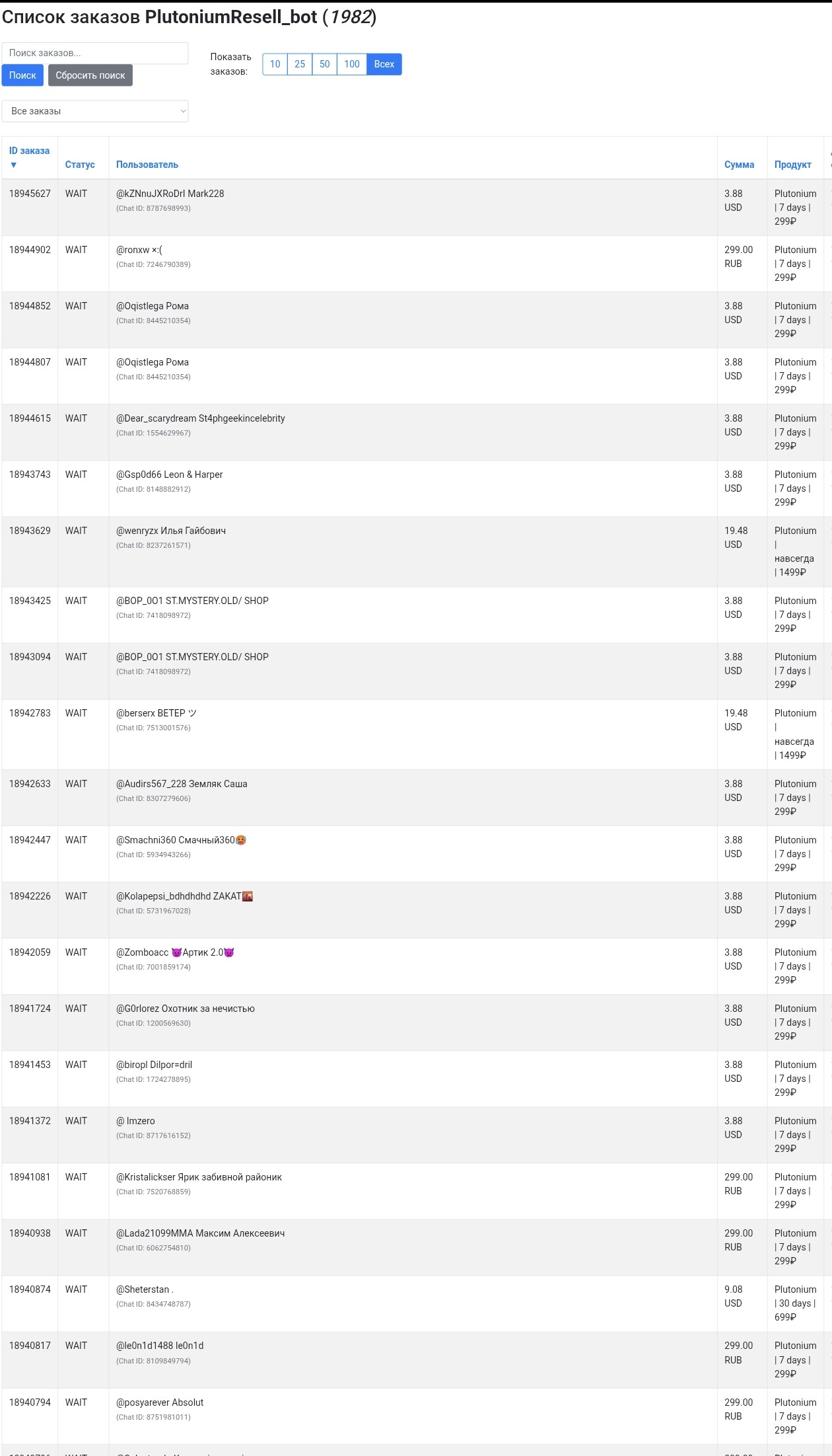 2. Бот для автоматических продаж @PlutoniumResell_Bot — 10 000+ пользователей