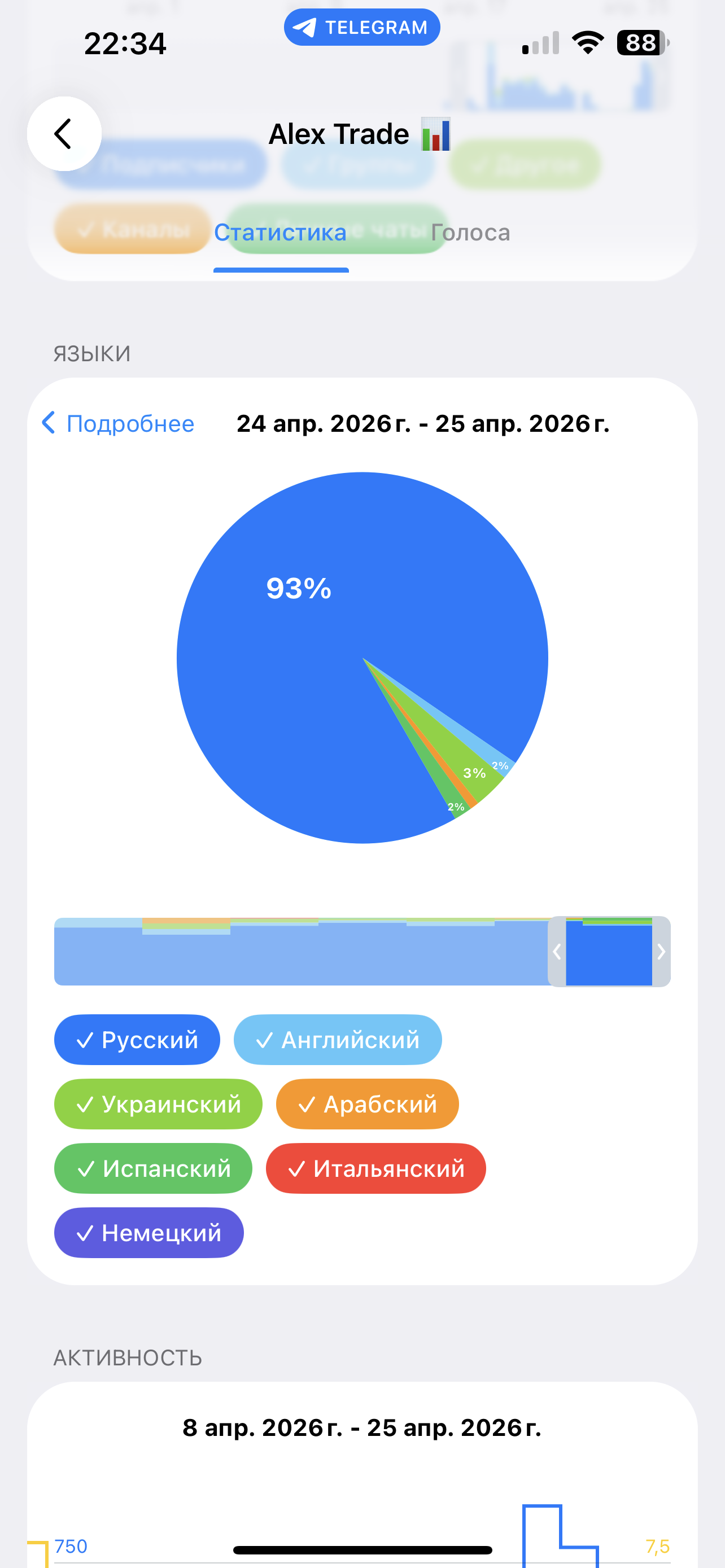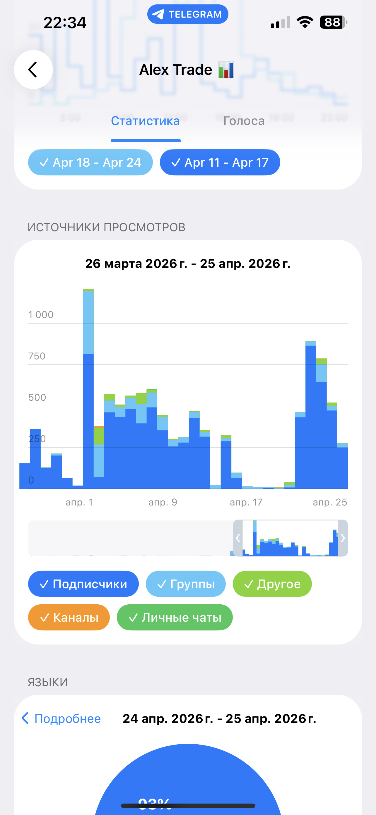 Более подробную статистику и упоминания можете посмотреть на tgstat.ru