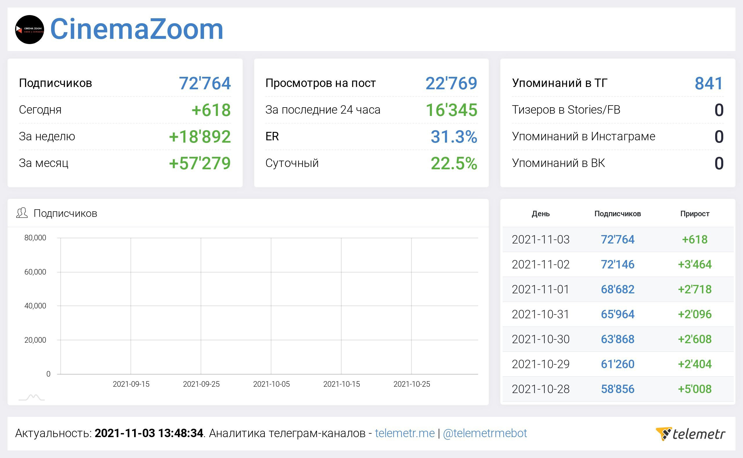 Telegram канал CinemaZoom с аудиторией 72,000+ человек в тематике «Кино|Сериалы»