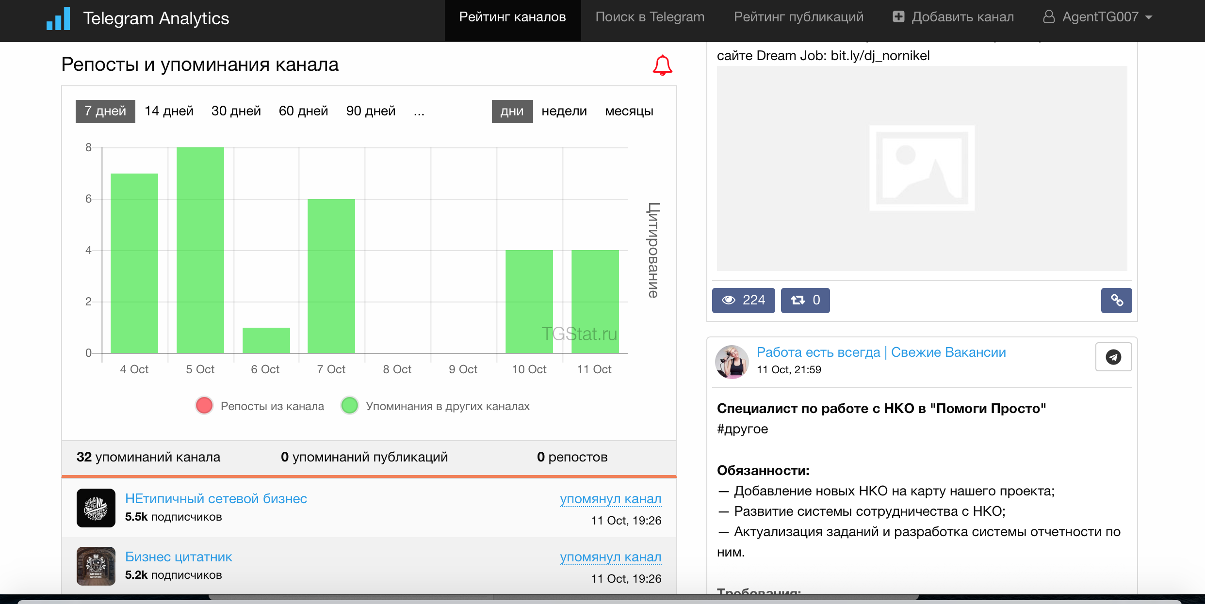 Вначале буду со всем помогать, даю чаты (более 300 штук), где разбираю места на рекламу на дни вперёд!